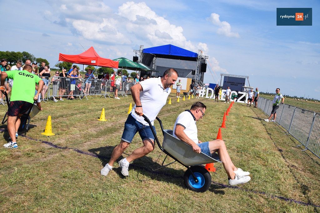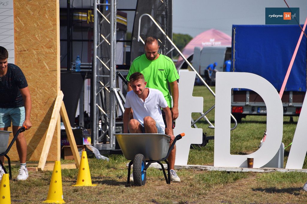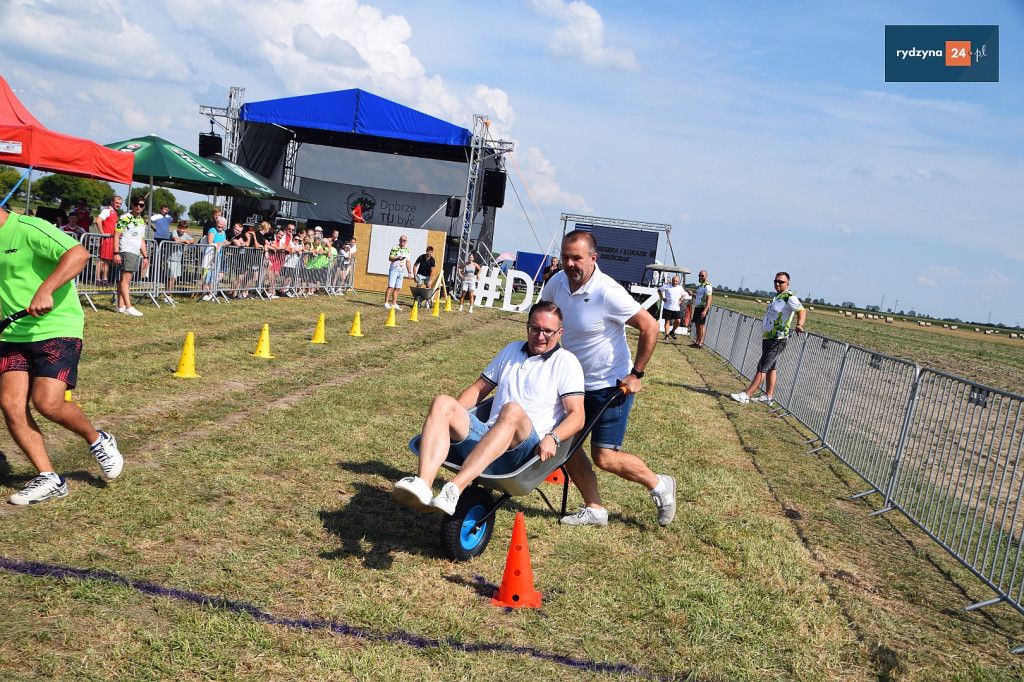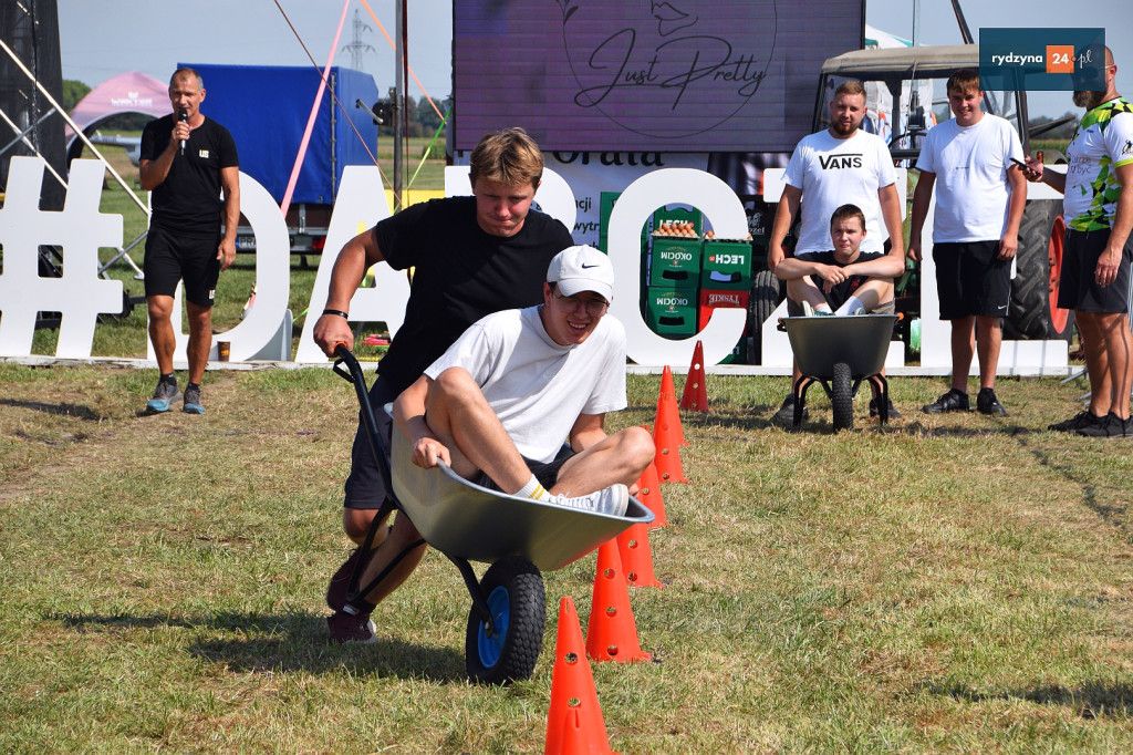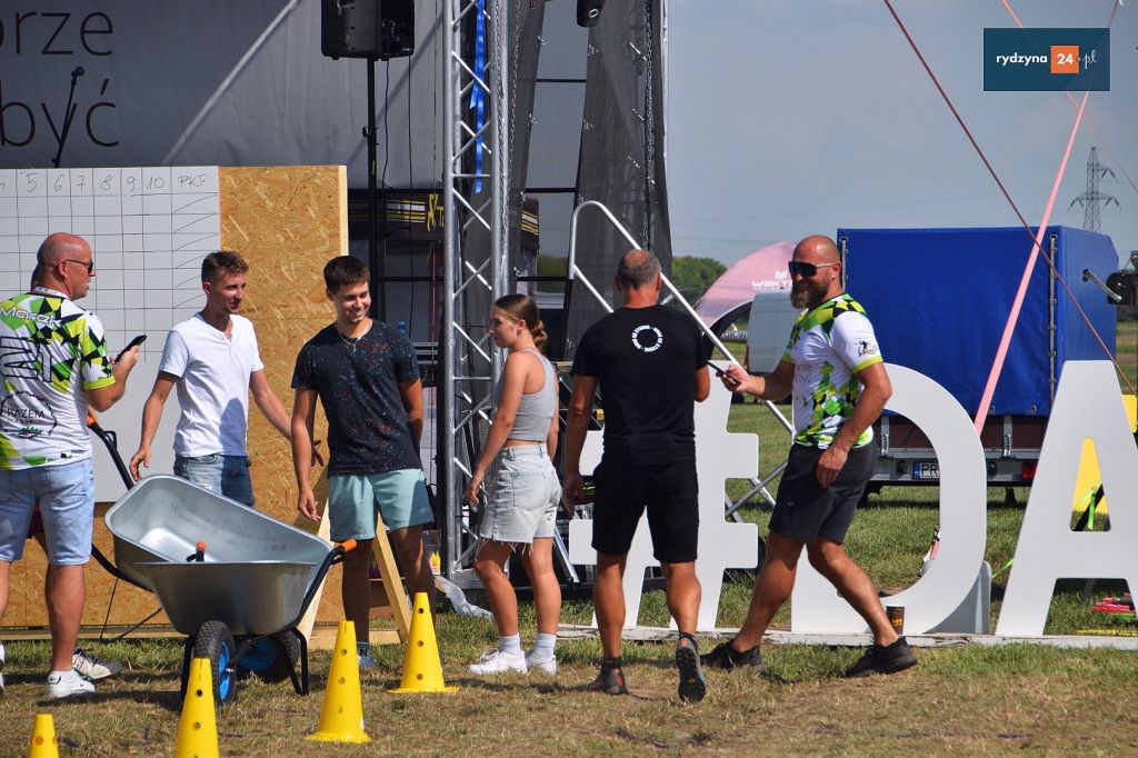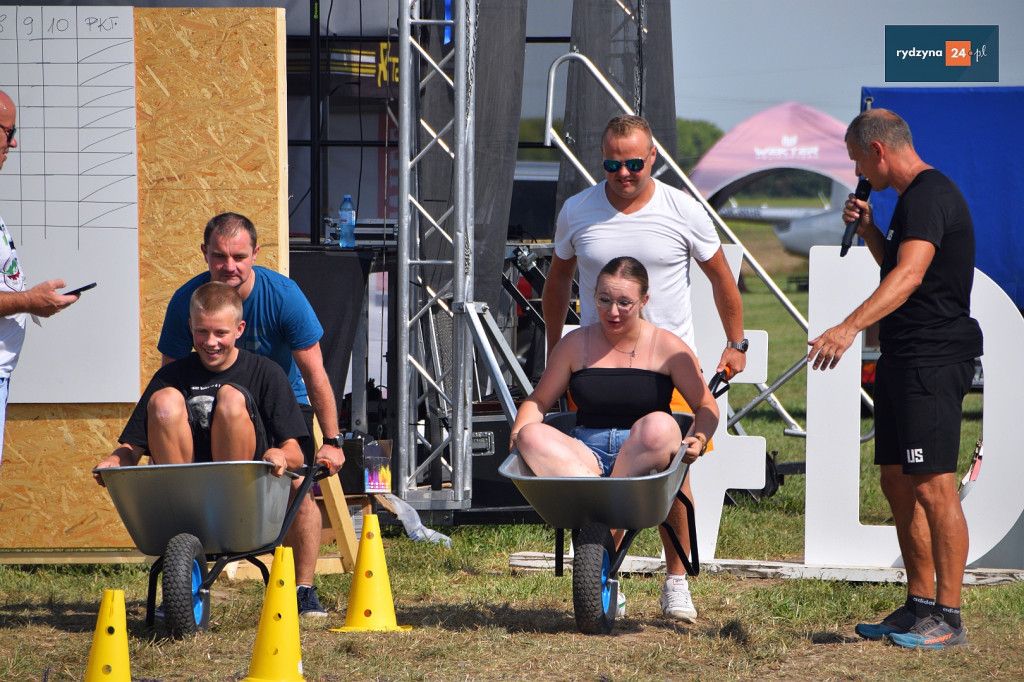Po południu, na lotnisku w Dąbczu, odbyła się rywalizacja osiedli i drużyn z Gminy Rydzyna, która obejmowała różnorodne zadania wymagające sprytu, zręczności i współpracy. Uczestnicy zmierzyli się w konkurencjach, które dostarczyły zarówno rywalizującym, jak i widzom, wielu emocji i radości.