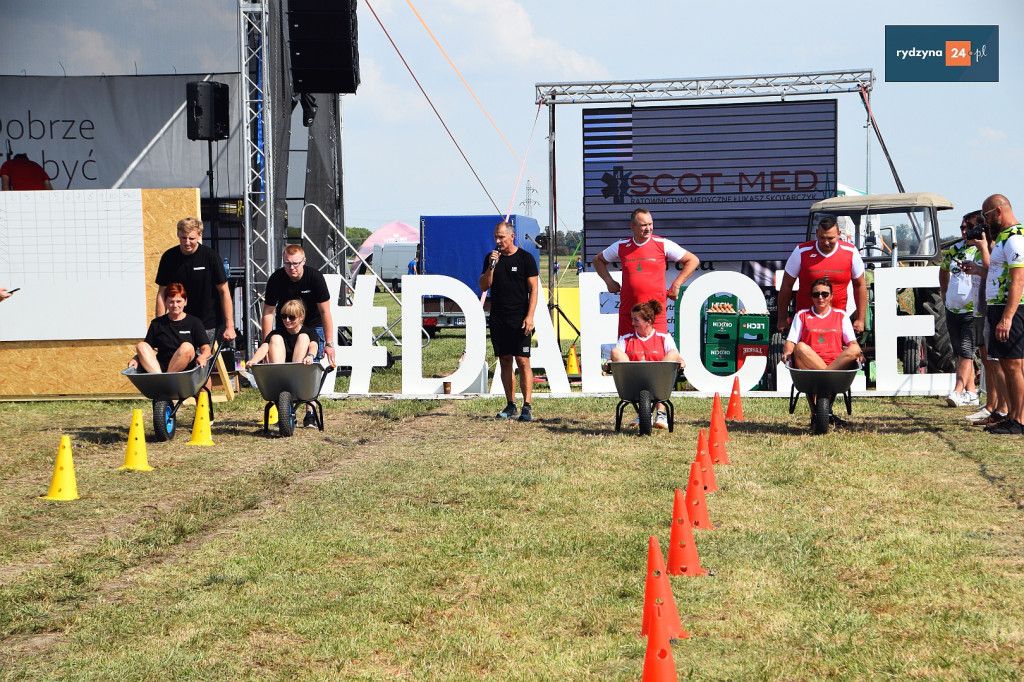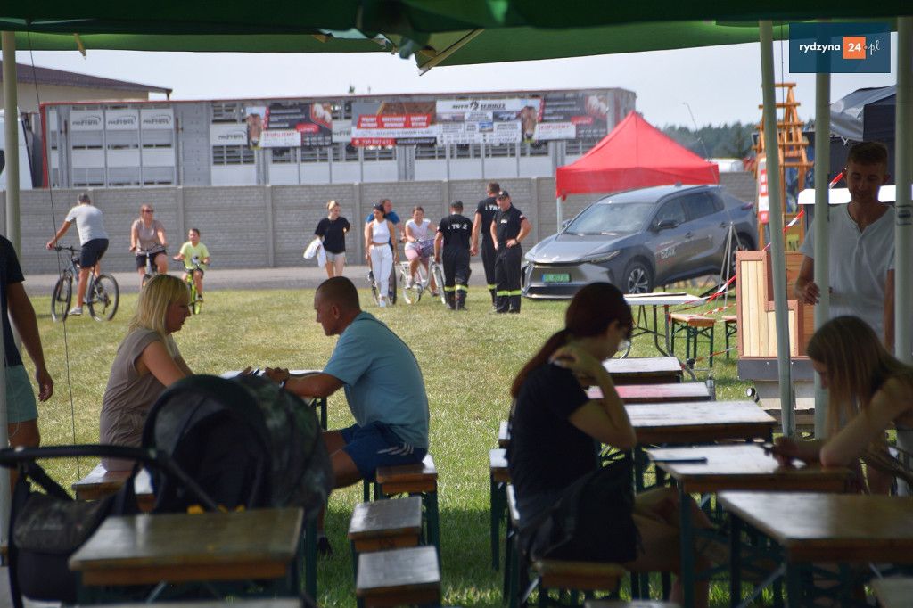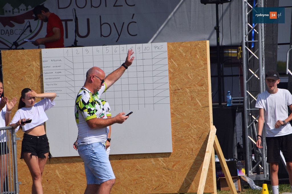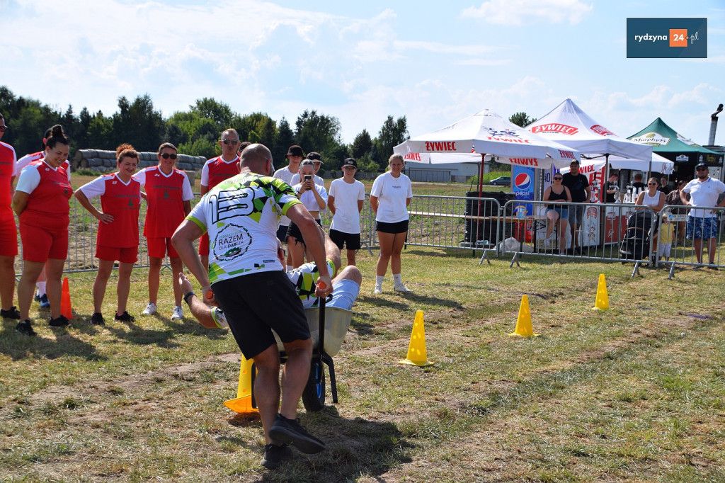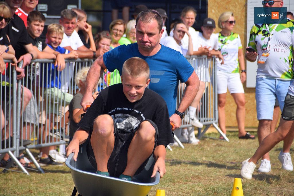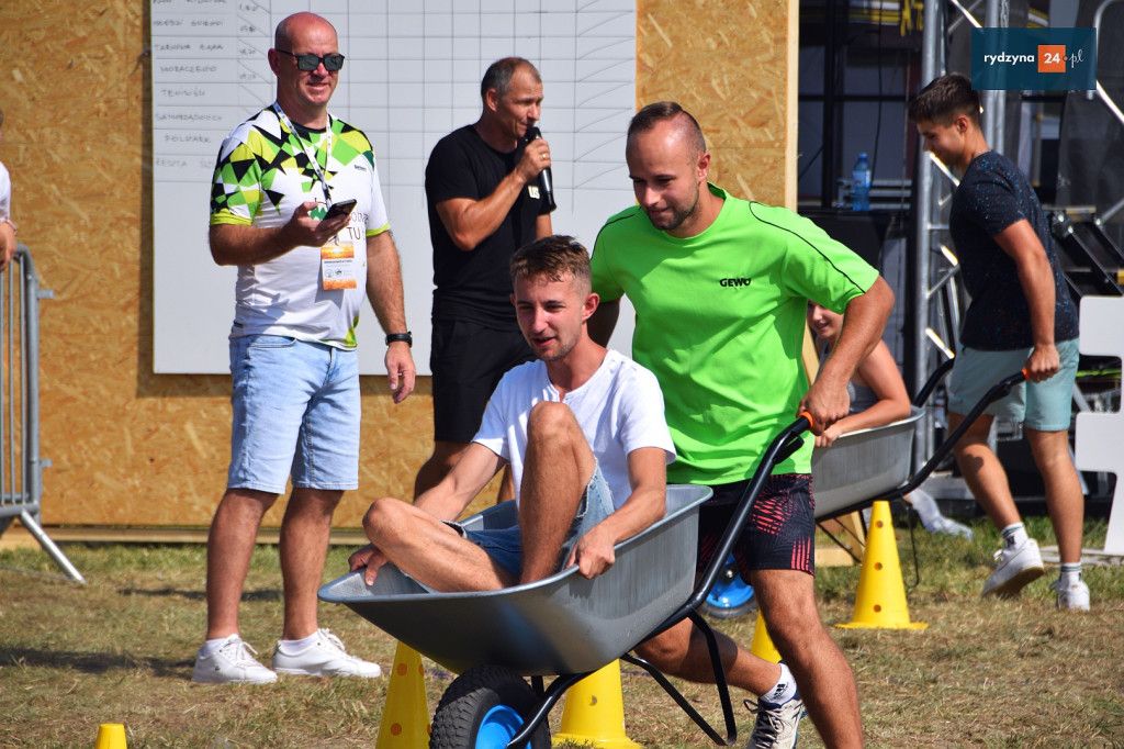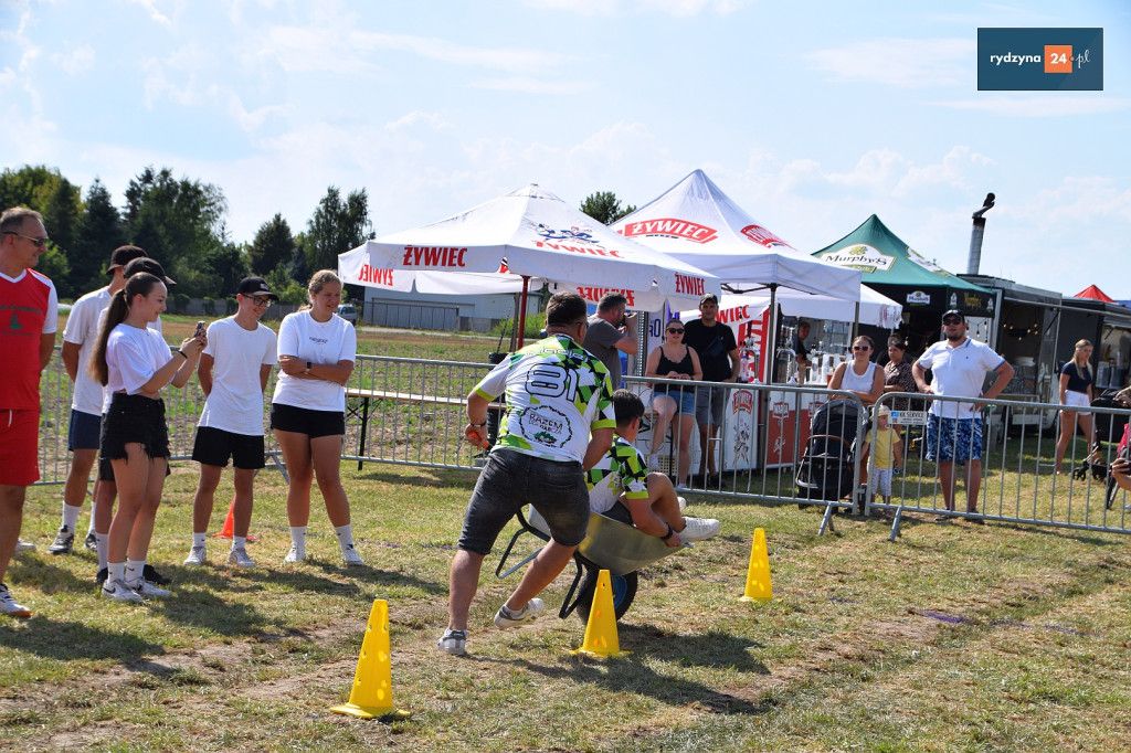 Po południu, na lotnisku w Dąbczu, odbyła się rywalizacja osiedli i drużyn z Gminy Rydzyna, która obejmowała różnorodne zadania wymagające sprytu, zręczności i współpracy. Uczestnicy zmierzyli się w konkurencjach, które dostarczyły zarówno rywalizującym, jak i widzom, wielu emocji i radości.