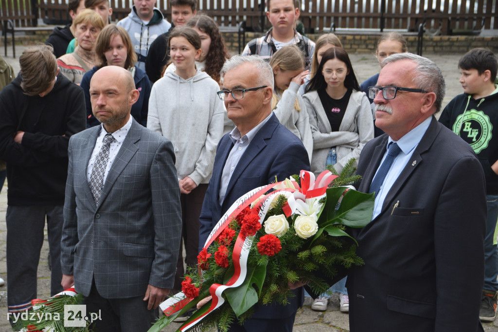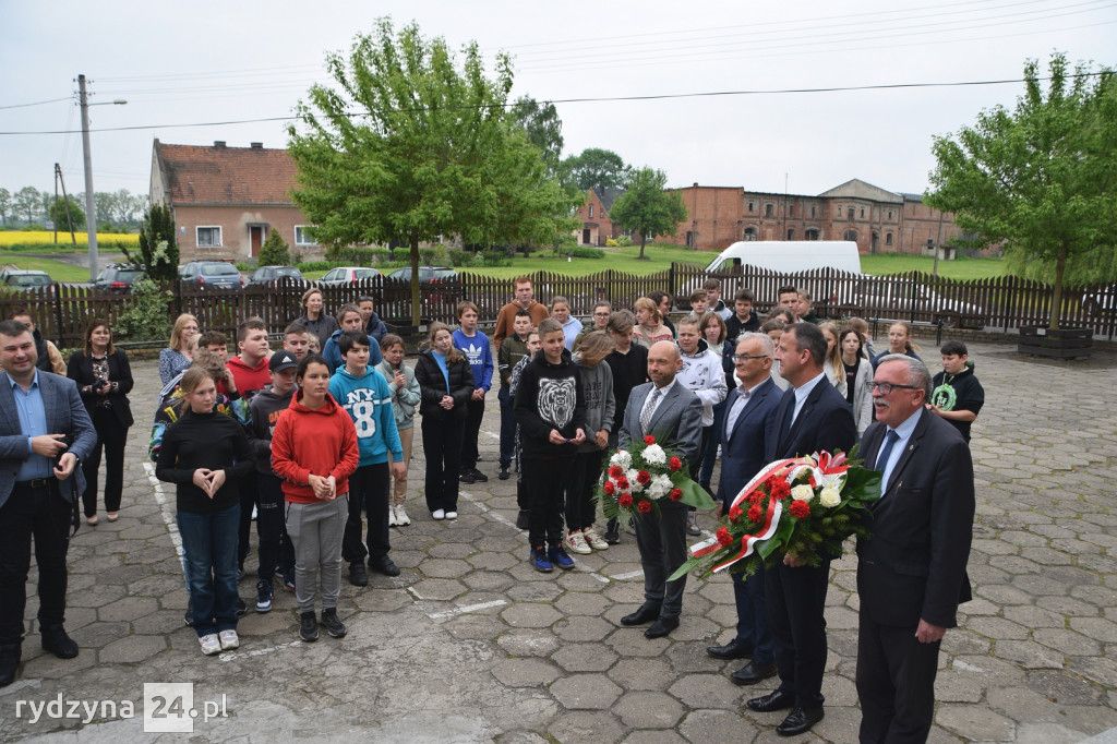 Wiązankę pod tablica w Rojęczynie jedna z dwóch w Wielkopolsce upamiętniającą Witolda Cielichowskiego złożyli także Dyrektor Szkoły w Kaczkowie Karol Olender, burmistrz MiG Rydzyna Kornel Malcherek oraz przewodnicząca samorządu uczniowskiego Pola Kochanek.