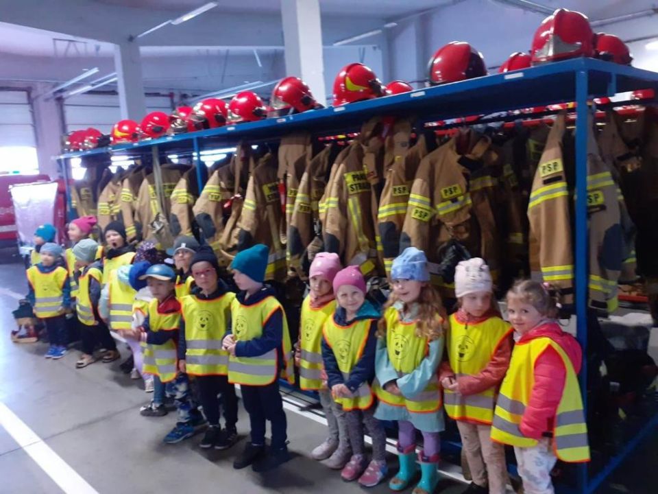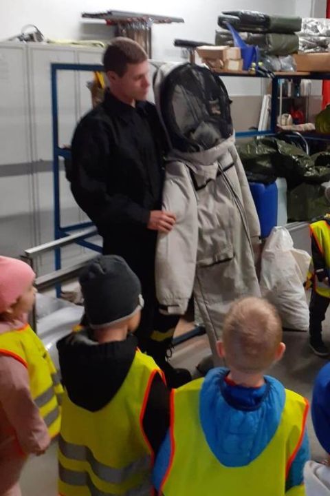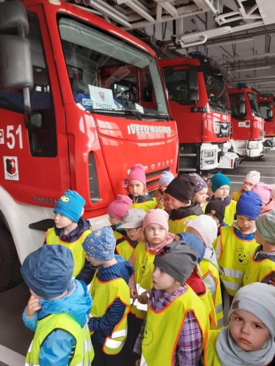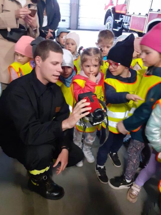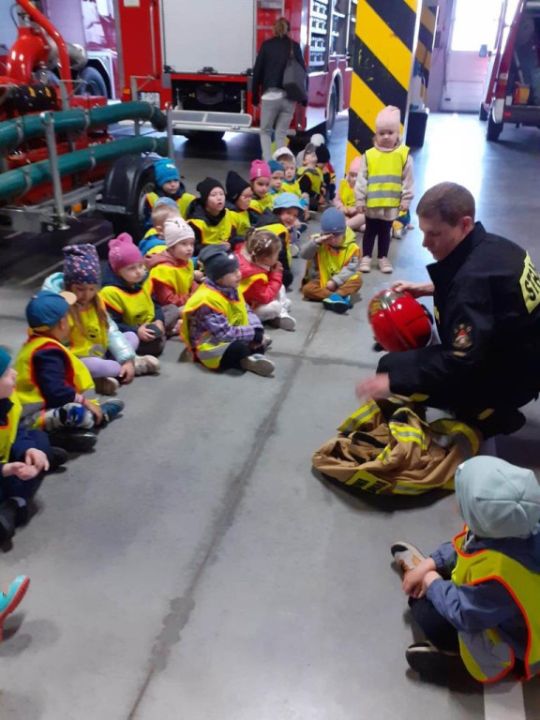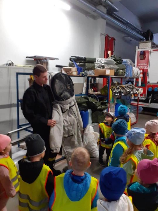 Dzieci zwiedziły salę edukacyjną, w której obejrzały sprzęt używany przez strażaków, zapoznały się z wozami strażackimi oraz ich osprzętem, poznały charakter pracy strażaków oraz ich umundurowanie. Strażacy opowiadali przedszkolakom o akcjach takich jak ratowanie ludzi z wypadków, ratowanie zwierząt, wypompowywanie wody z zalanych pomieszczeń, gaszenie pożarów.