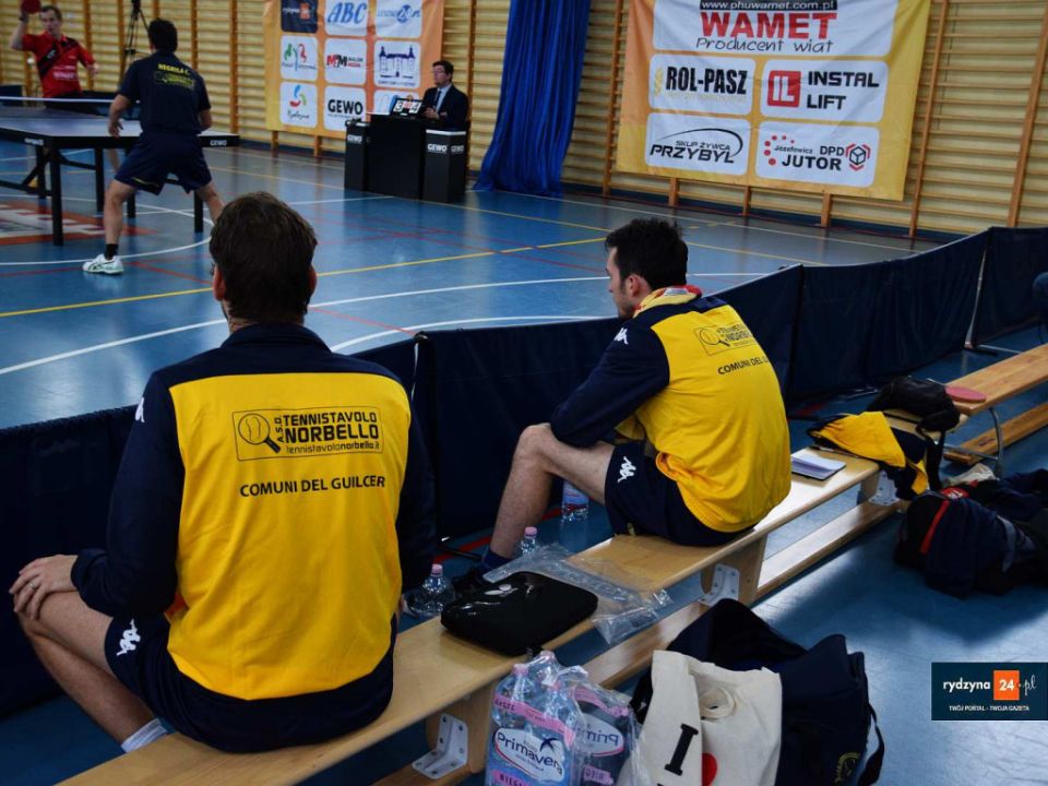 Zwycięstwa w dwóch bardzo wyrównanych pojedynkach dodały animuszu włoskiej ekipie, która pewnie pokonała w grze podwójnej braci Tomasza i Krzysztofa Mrozków 3:0. Piąty pojedynek dnia to pokaz ogromnych umiejętności Lorenzo Raginiego. Włoch, który ma pomóc ASD Tennistavolo Norbello w powrocie do Serie A, nie miał litości dla 17-letniego Mikhaila Tsyhanouskiego. Wygrał 3:0, oddając swojemu młodszemu przeciwnikowi zaledwie dwanaście „oczek”.