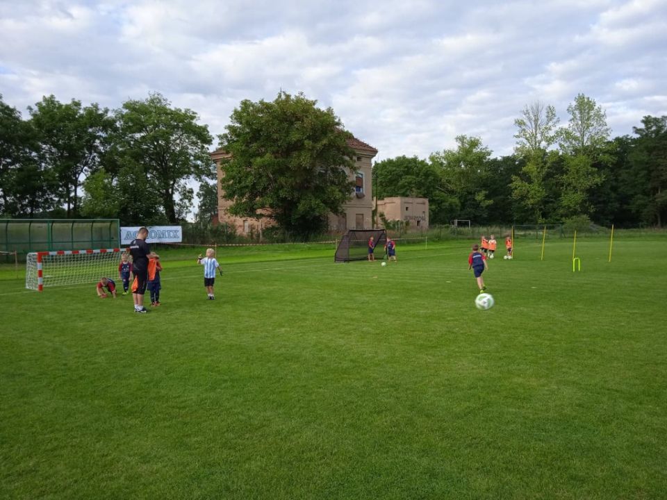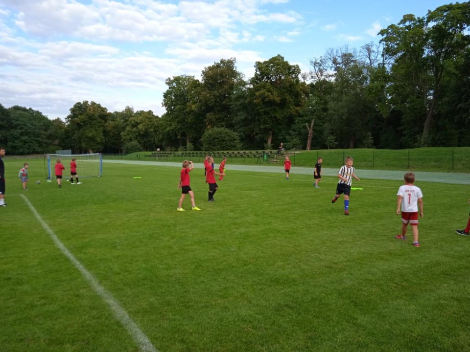 Podczas wtorkowego treningu najmłodsza grupa Rydzyńskiej Akademii Piłkarskiej otrzymała bramki od firmy, zajmującej się budową rydzyńskiej podstawówki.