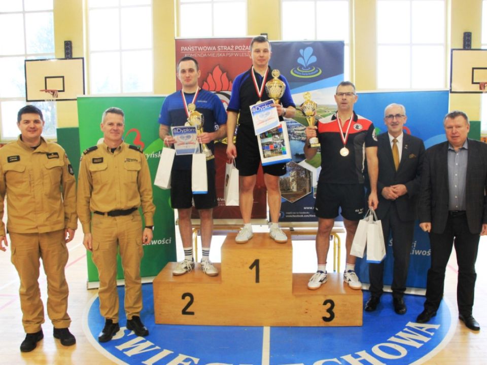Najlepszych tenisistów stołowych wśród strażaków nagrodzili pucharami, medalami, upominkami i dyplomami m.in. komendant miejski PSP w Lesznie Sebastian Kozłowski, starosta leszczyński Jarosław Wawrzyniak i wójt gminy Święciechowa Marek Lorych.