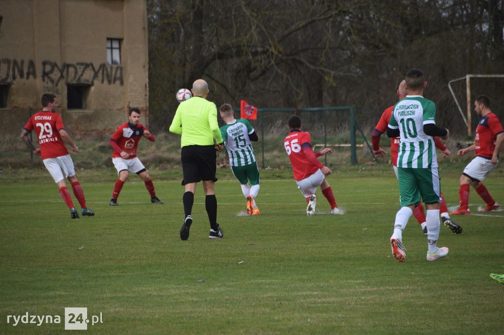 Druga drużyna Rydzyniaka nie miała szczęścia. Przegrała spotkanie z LKS Zjednoczeni Pudliszki na własnym boisku.