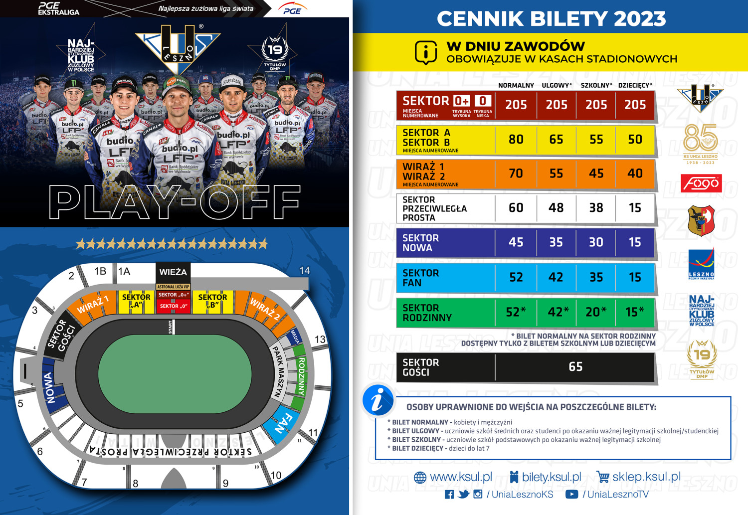 Sprzedaż biletów prowadzona będzie w Galerii Leszno i kasach przy stadionie oraz za pośrednictwem INTERNETU: