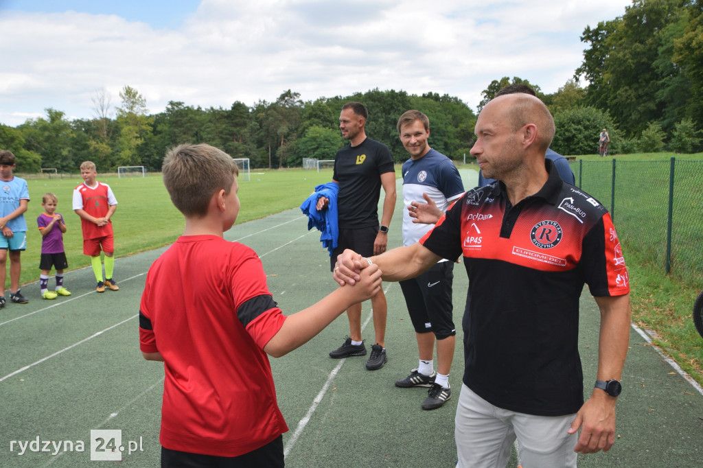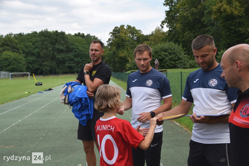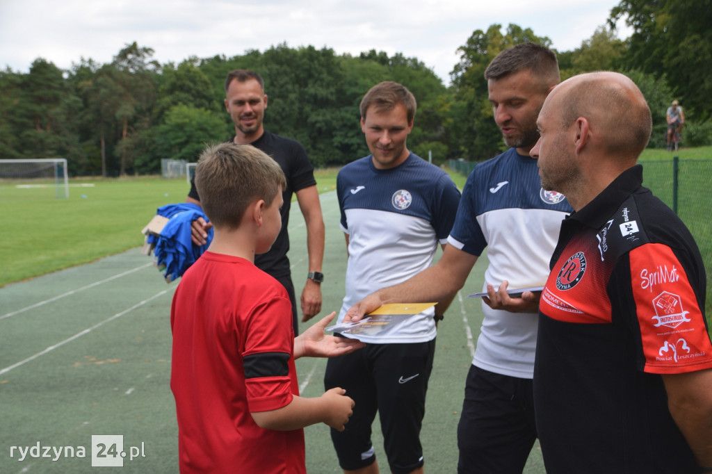 W piątek zakończył się kolejny turnus półkolonii, w których udział wzięło w sumie 59 osób. Zajęcia organizowane były wraz z Elite Football School na zasadzie Mini Campu z 3 jednostkami treningowymi dziennie (trening motoryczny + 2 jednostki piłkarskie). Oczywiście nie zabrakło atrakcji w postaci Lasermaniak, czy też wyjścia do Zamek w Rydzynie, aby jeszcze lepiej poznać historię tego miejsca jak i naszego miasteczka. Chłopcy mieli również okazję wysłuchać wykładów nt. zdrowego odżywiania i psychologii w sporcie. Na koniec intensywnego tygodnia uczestnicy zostali zaproszeni na lody ufundowane przez Pana Burmistrza Kornela Malcherka. Każdy z uczestników otrzymał personalizowaną koszulkę oraz dyplom ukończenia Mini Campu.
