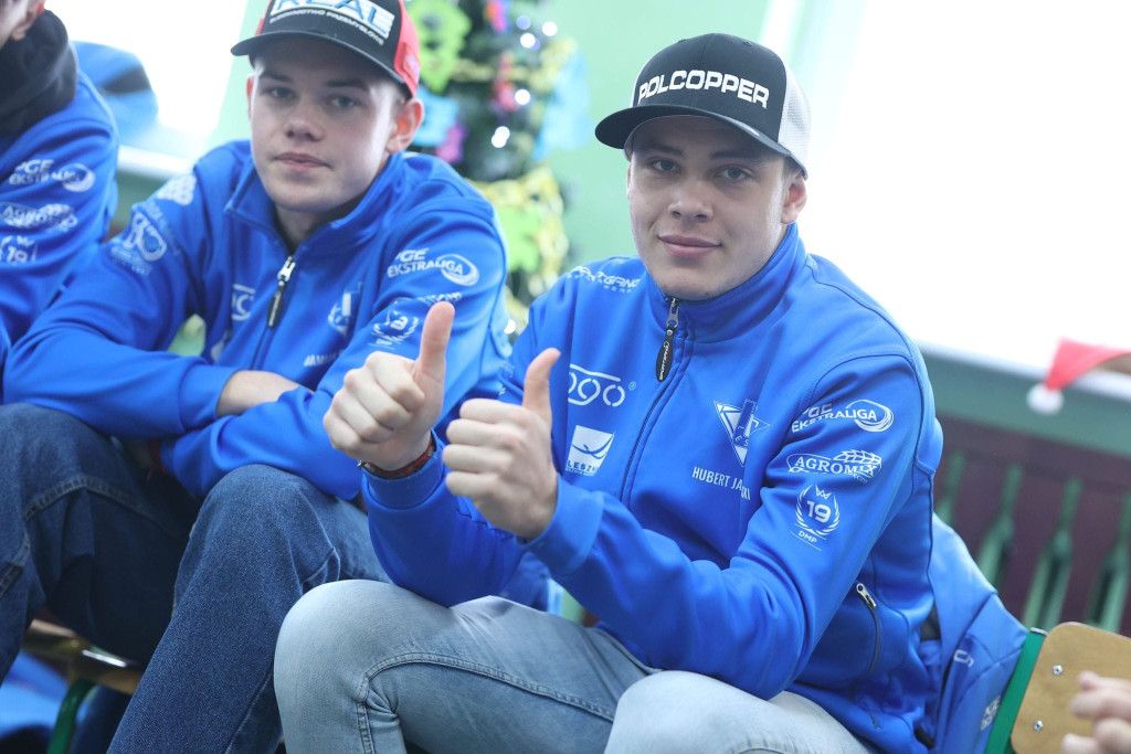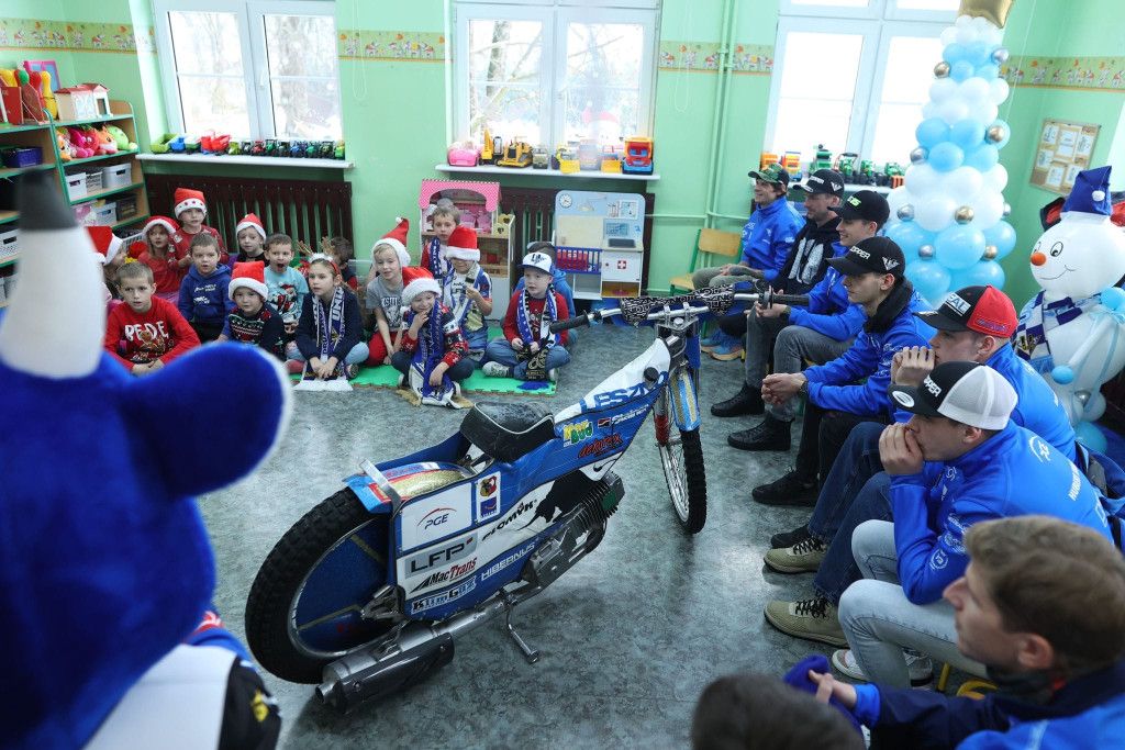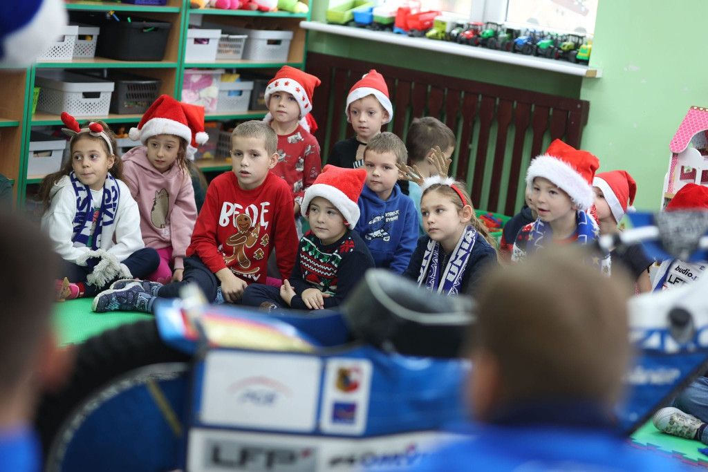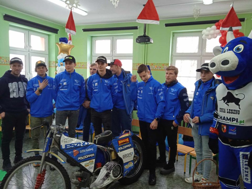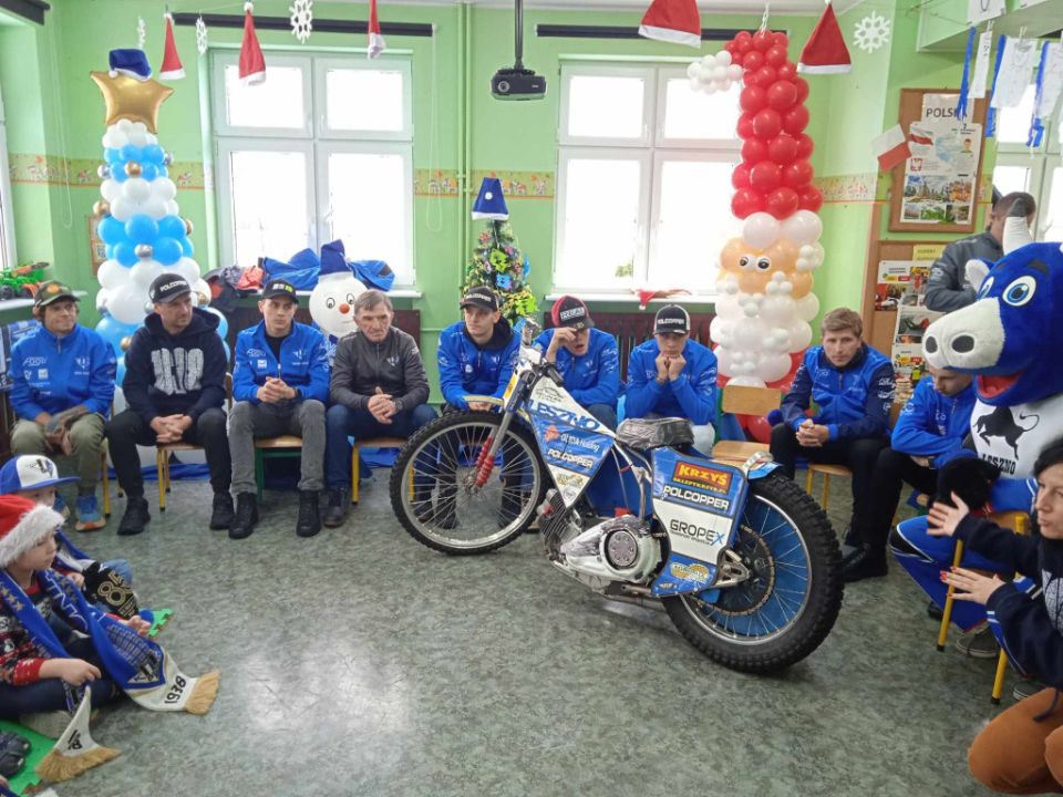 W ramach zabawy – konkursu , 6 grudnia oddział przedszkolny Stokrotki odwiedzili zawodnicy Unii Leszno wraz z legendą żużla Romanem Jankowskim.