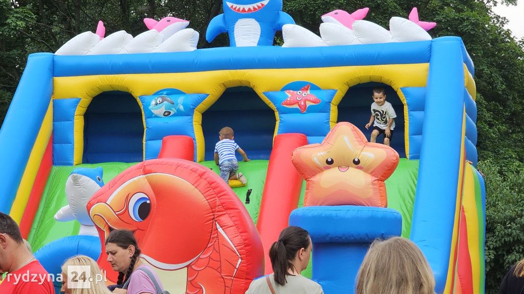 Nie zabrakło również smakowitych przekąsek i napojów w strefie gastronomicznej, gdzie każdy mógł znaleźć coś dla siebie. W trakcie imprezy odbyły się również konkursy sprawnościowe, w których dzieci z entuzjazmem rywalizowały, pokazując swoje umiejętności sportowe.