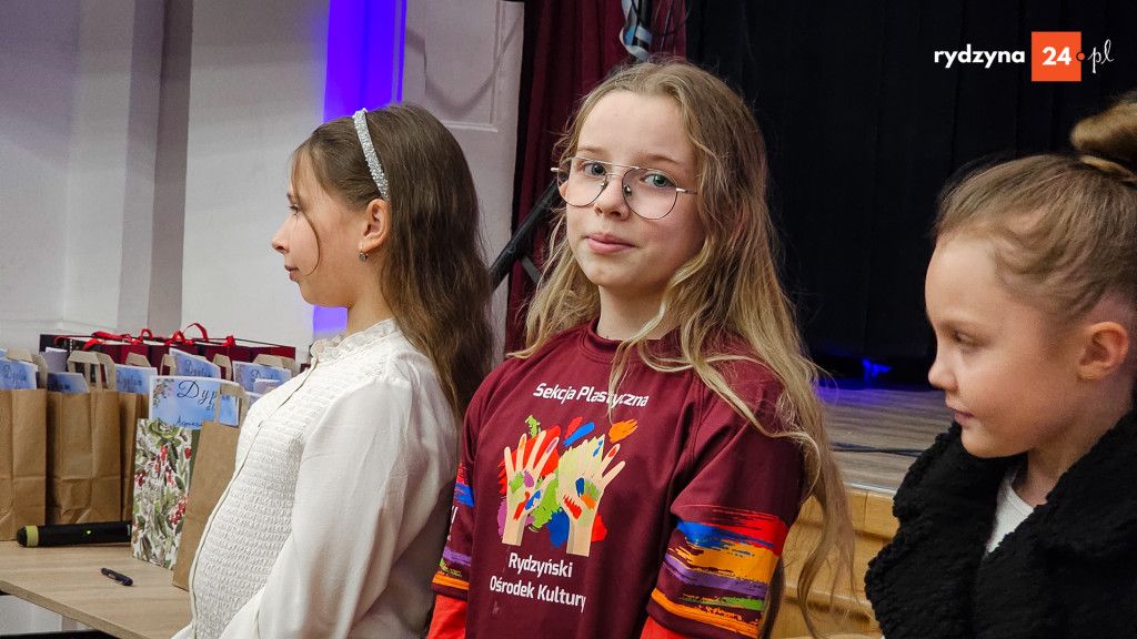W czwartek, 12 grudnia 2024 roku, o godzinie 17:00 w sali widowiskowej Rydzyńskiego Ośrodka Kultury odbyło się uroczyste otwarcie wystawy i wręczenie nagród laureatom Gminnego Konkursu Plastycznego „Boże Narodzenie w moich oczach”. Wydarzenie zgromadziło młodych artystów, ich rodziny oraz lokalnych mieszkańców, którzy mieli okazję podziwiać wyjątkowe prace plastyczne ukazujące świąteczny klimat oczami dzieci i młodzieży.