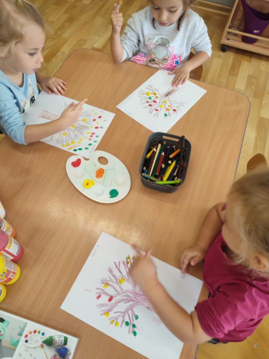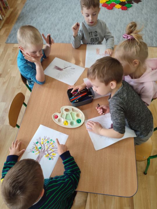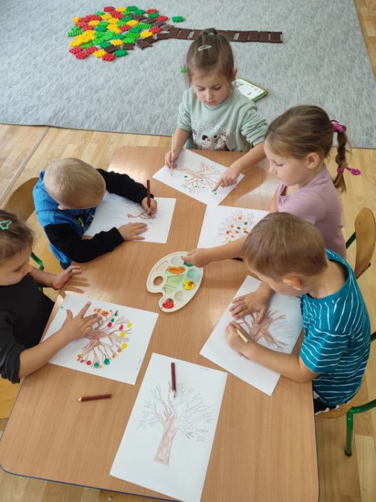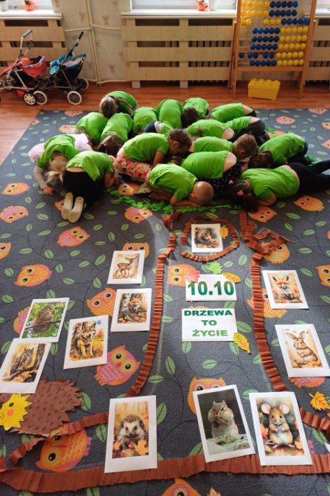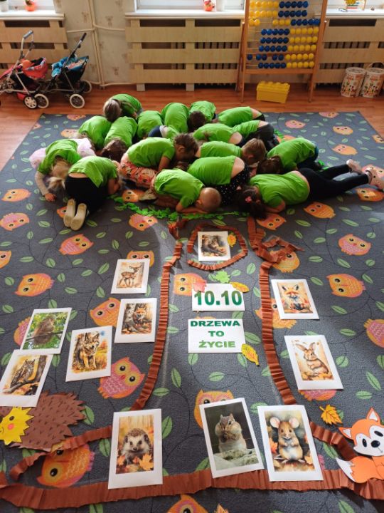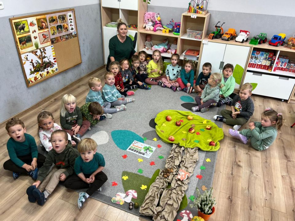 Dnia 10 października obchodzimy na całym świecie Dzień Drzewa. Dzieci z Przedszkola Kolorowy Wiatraczek wraz z nauczycielkami włączają się aktywnie w zabawy i działania dostarczające wiedzy na temat wartości jakie niosą ze sobą te zielone filtry. Odbywają wycieczki i spacery po lesie, obserwują drzewa oraz ich otoczenie, porównują liście i owoce, nazywają je, uczą się o korzyściach jakie nam dają. Każdego roku przedszkolacy również sadzą drzewka, by nasze place zabaw były zacienione i pełne zieleni. Dzieci wiedzą, że drzewa latem zapewniają cień i dostarczają niezbędnego tlenu, a zimą stanowią naturalną barierę przed wiatrem, ulepszają też jakość gleby, zwiększając jej możliwości pochłaniania wody. Przedszkolacy tworzą makiety drzew, poznają różnorodne środowiska wokół drzew, zwierzęta, które przy nich znajdują schronienie. Tworzą zielniki, zbierają dary przyrody w swoich zielonych, jesiennych kącikach – kasztany, żołędzie, jarzębinę. Rozwiązują też zagadki i słuchają opowiadań oraz piosenek o drzewach. Przy okazji dowiadują się, że są drzewa iglaste, które mają szyszki i liściaste, na których rosną różnorodne owoce.