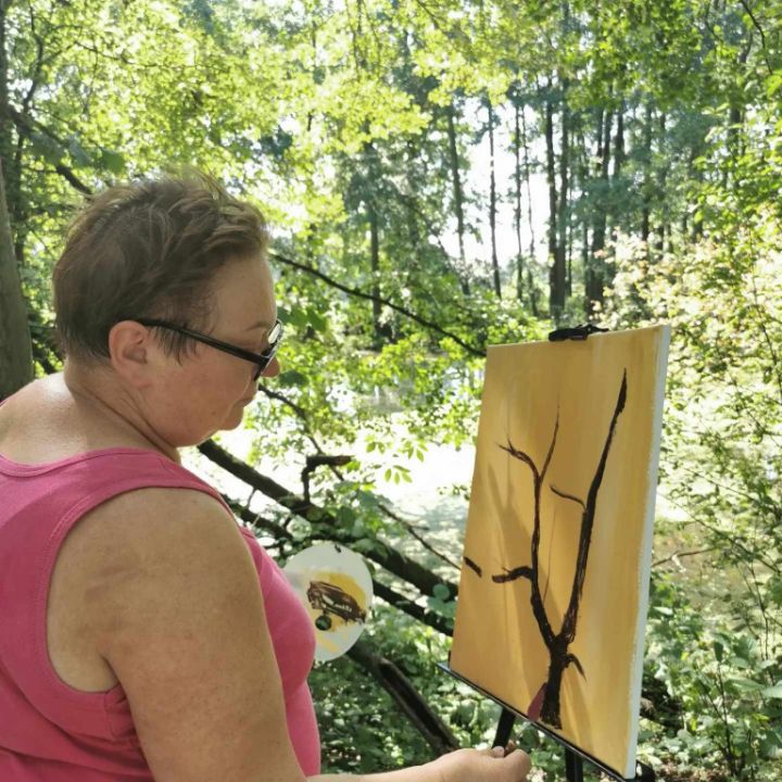 W tym roku wybrałyśmy się w okolice Doliny Baryczy. W sumie niedaleko od domu, jednak jak się okazało to zupełnie inna przestrzeń. Przepiękne krajobrazy ze stawami w tle, zrobiły na nas niesamowite wrażenie. No i do tego Rezerwat przyrody. Dyskretnie rozłożyłyśmy sztalugi w lesie, nad stawem i w szuwarach – w okolicach Rudy Milickiej oraz Grabownicy. Okazało się, że nasza obecność wzbudziła sporą ciekawość rowerzystów i spacerujących. Bo wybrane przez nas miejsca do malowania zainteresowały również innych ludzi. A bardzo dobrze zorganizowane ścieżki rowerowe, zachęcały do wycieczek. I w takich okolicznościach oprócz procesu twórczego, przeprowadziliśmy wiele sympatycznych rozmów o tym co robimy, o sztuce. To był czas dla nas dla kobiet. Proces twórczy jak zawsze miał różne etapy. Było trudno ale i pięknie. Po powrocie do pracowni, naniesiemy ostatnie poprawki i przygotujemy obrazy na wystawę. Planujemy jej otwarcie jesienią. I już dzisiaj serdecznie zapraszamy.