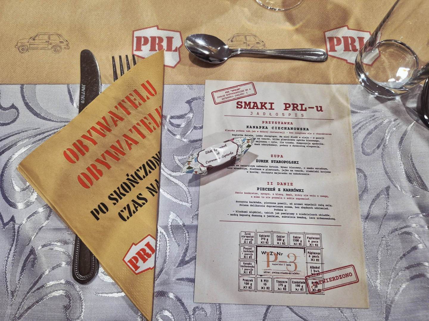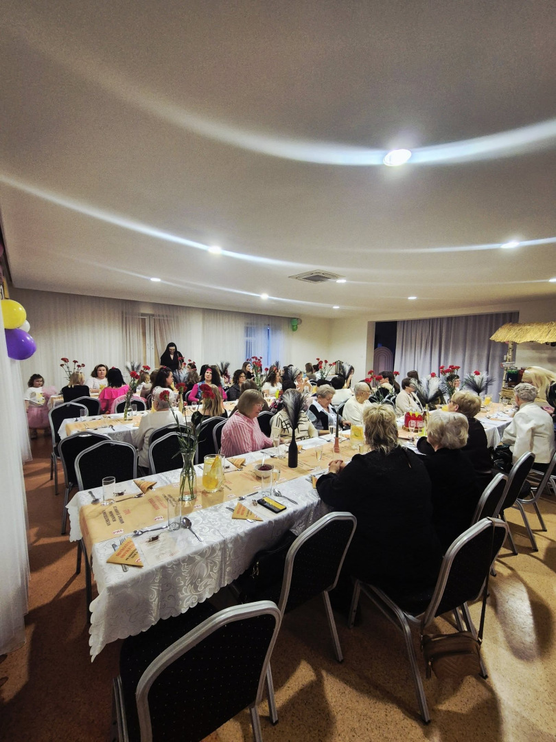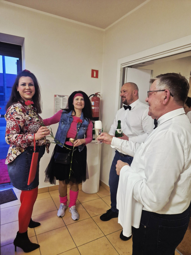 Już przy wejściu każda z Pań otrzymała czerwonego goździka – charakterystyczny symbol Dnia Kobiet z czasów PRL, który idealnie podkreślił klimat wieczoru. Odpowiednią atmosferę stworzył również wystrój sali nawiązujący do minionej epoki, a lokalny szef kuchni przygotował potrawy inspirowane smakami tamtych lat. Przy stolikach nie brakowało rozmów i wspomnień o dawnych czasach – kolejkach w sklepach czy codzienności sprzed lat.