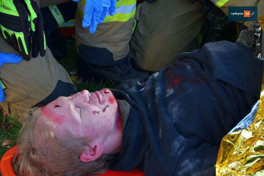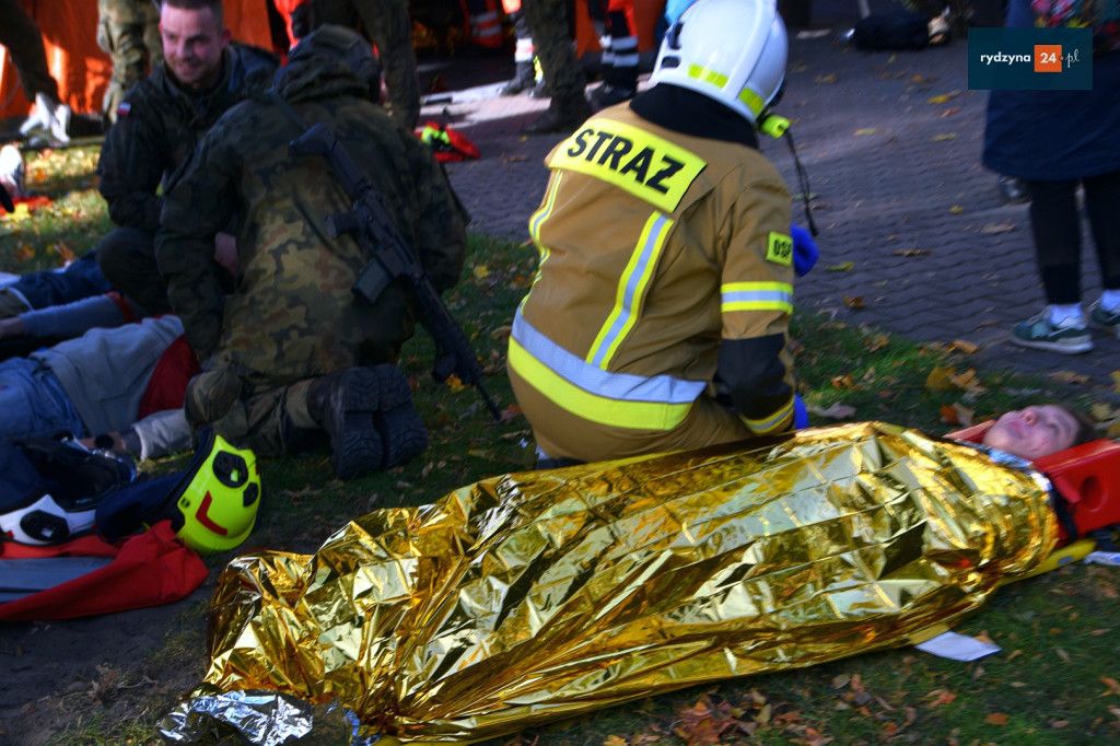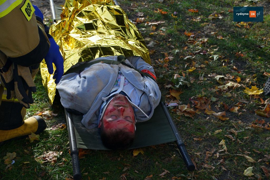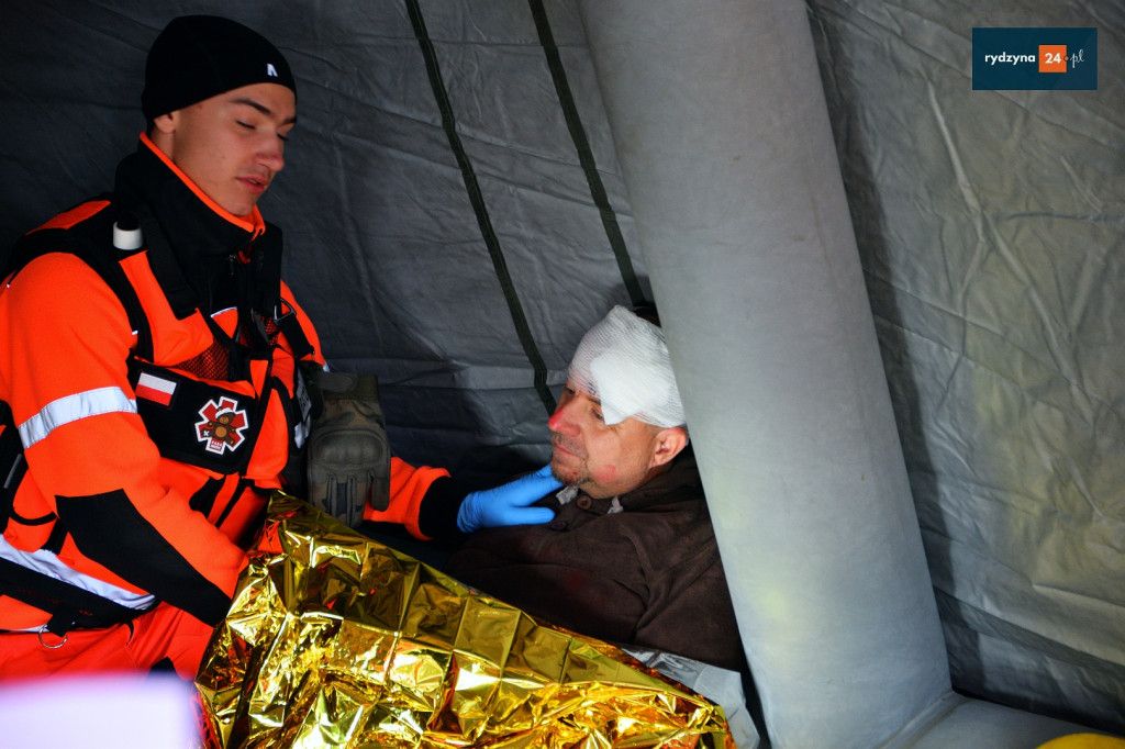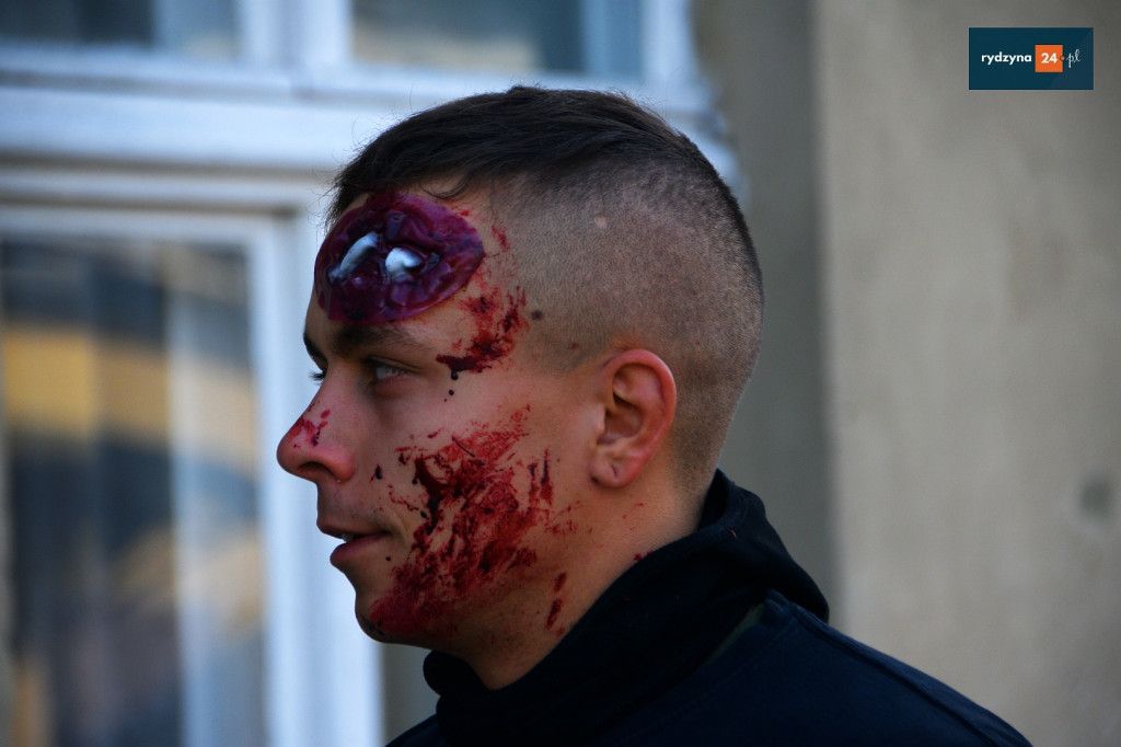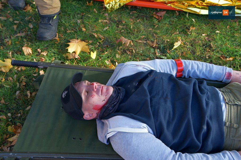 Realne odzwierciedlenie obrażeń było możliwe dzięki wsparciu Powiatu Leszczyńskiego, który zakupił środki pozoracji do działań medycznych.