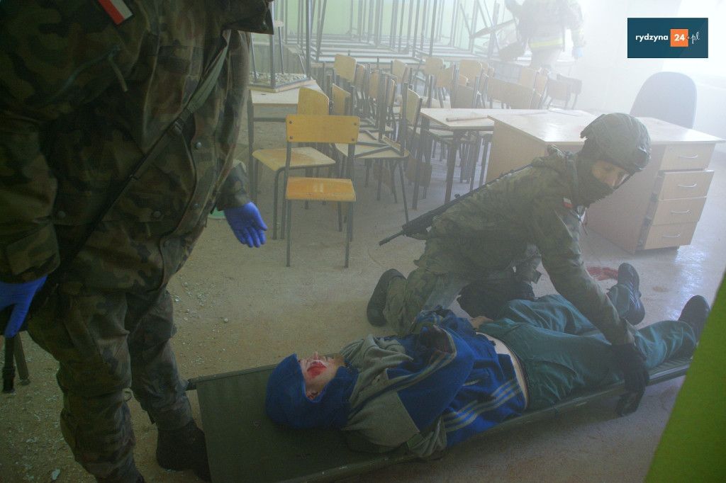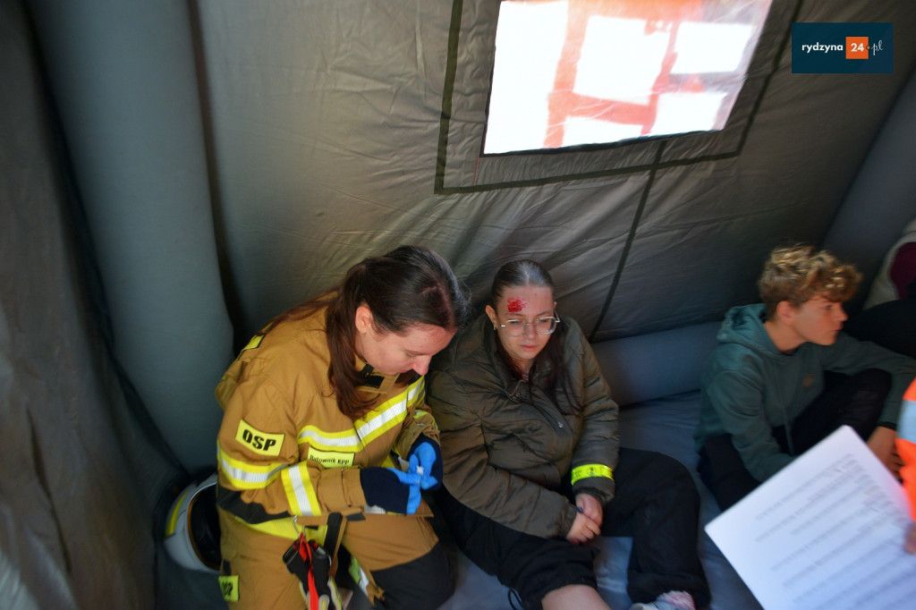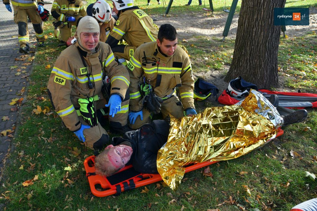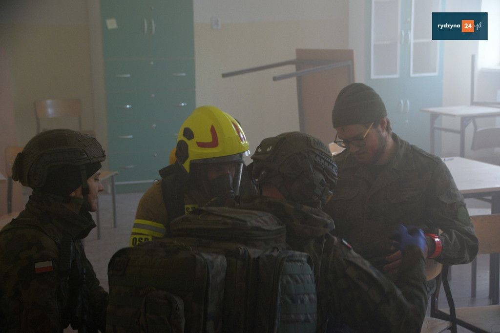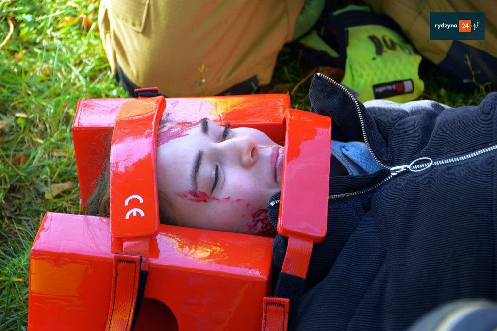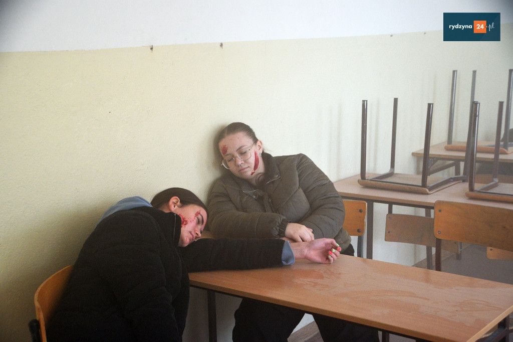 Realne odzwierciedlenie obrażeń było możliwe dzięki wsparciu Powiatu Leszczyńskiego, który zakupił środki pozoracji do działań medycznych.