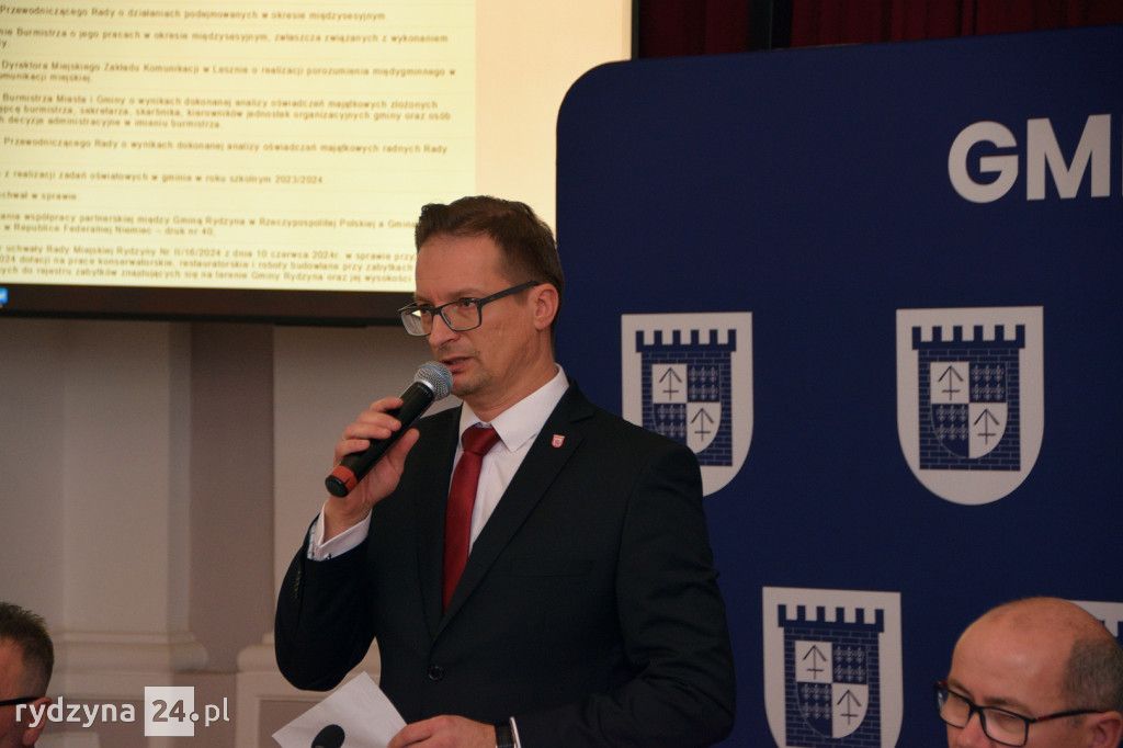 Podczas V Sesji Rady Miejskiej Rydzyny burmistrz Kornel Malcherek oraz przewodniczący rady Roman Skiba złożyli serdeczne podziękowania byłym sołtysom, którzy zakończyli swoją służbę na rzecz lokalnych społeczności. W dowód uznania wręczyli im pamiątkowe grawertony, wyrażając wdzięczność za ich wkład i zaangażowanie.