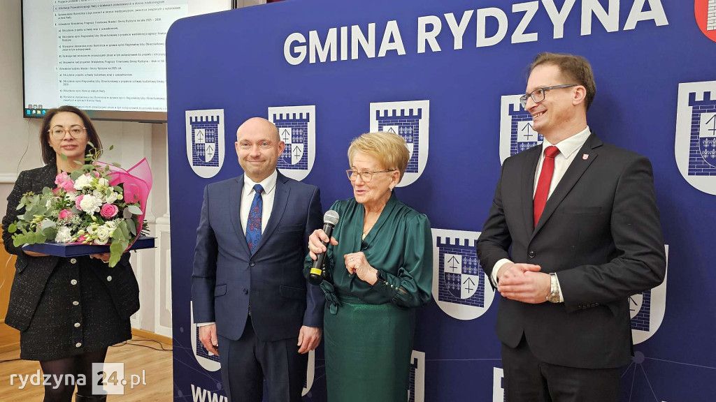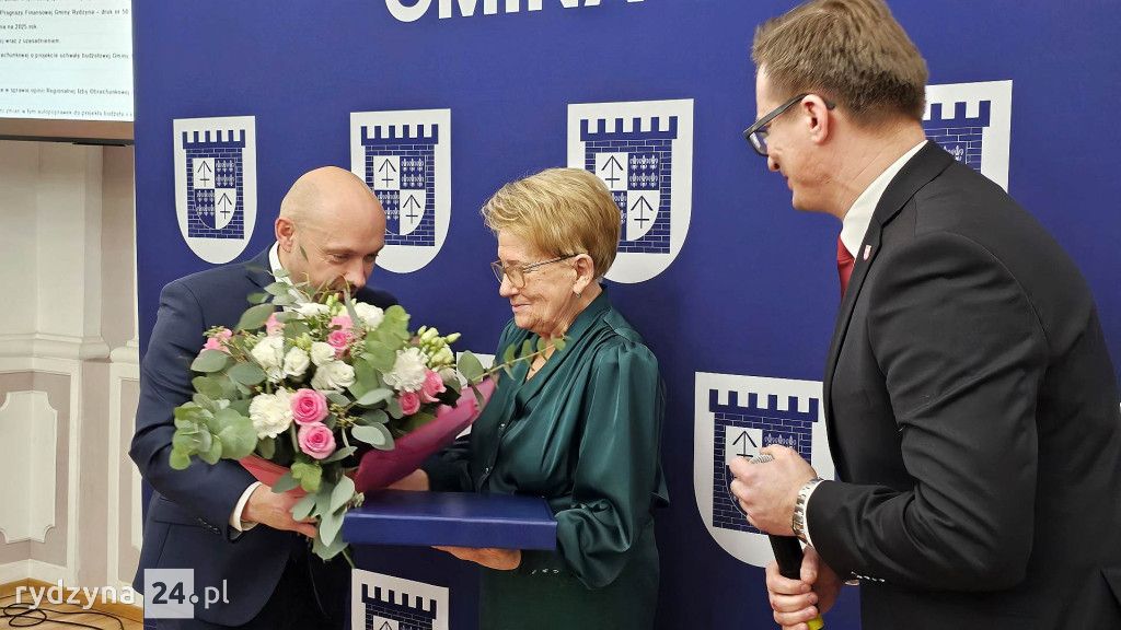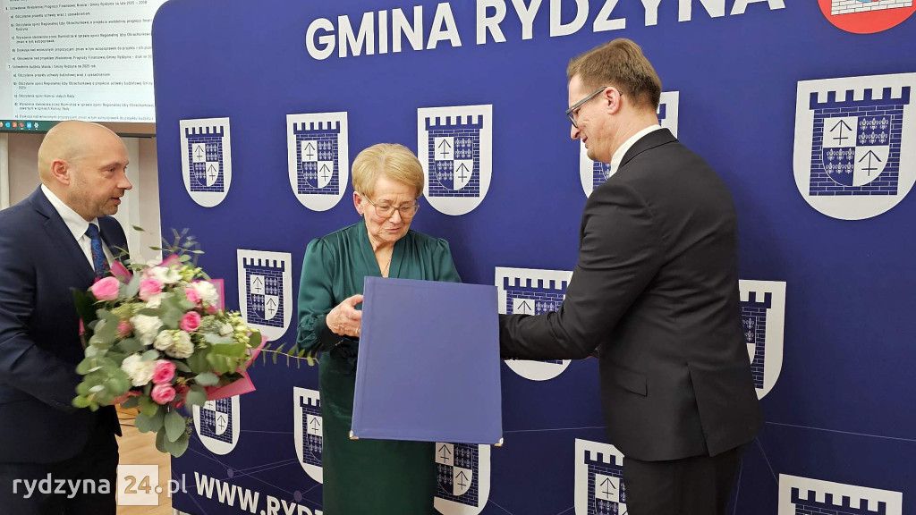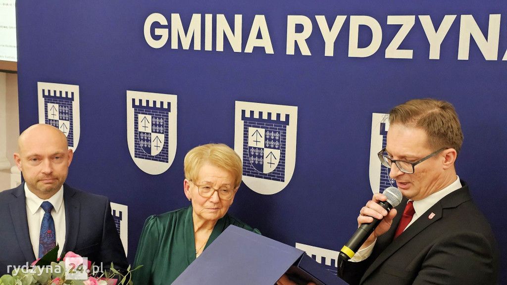 Podczas ostatniej sesji Rady Miejskiej w Rydzynie przewodniczący Roman Skiba oraz burmistrz Kornel Malcherek podziękowali Pani doktor Danucie Papież za 52 lata i cztery miesiące niestrudzonej pracy w miejscowej przychodni lekarskiej. W uznaniu za jej wieloletni wkład w zdrowie mieszkańców Rydzyny, wręczono jej pamiątkowy grawer oraz bukiet kwiatów.