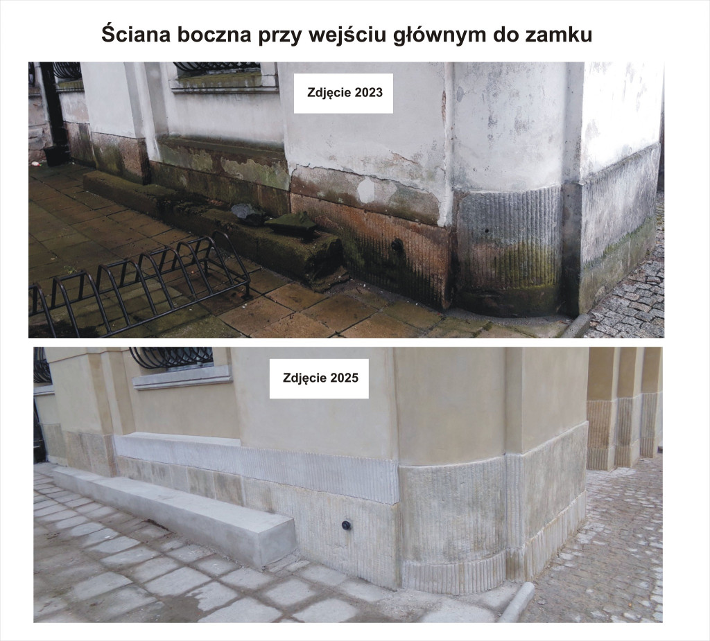 Sprzed zamku królewskiego w Rydzynie zniknęły rusztowania, co pozwala w pełni podziwiać efekty prac przy otoczeniu głównego wejścia. Pozostało jedynie nieco oczyścić kostkę brukową i schody. Prace obejmowały skucie zdegradowanych tynków wraz z pierwszym gzymsem na wysokości około 4,5 metra oraz konserwację i renowację elementów z piaskowca.