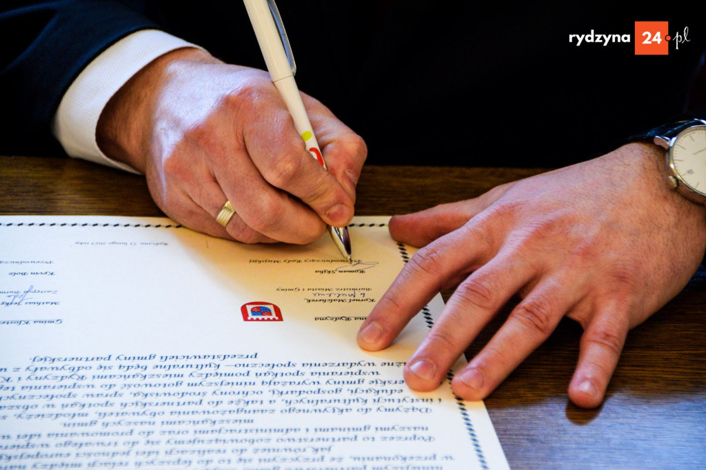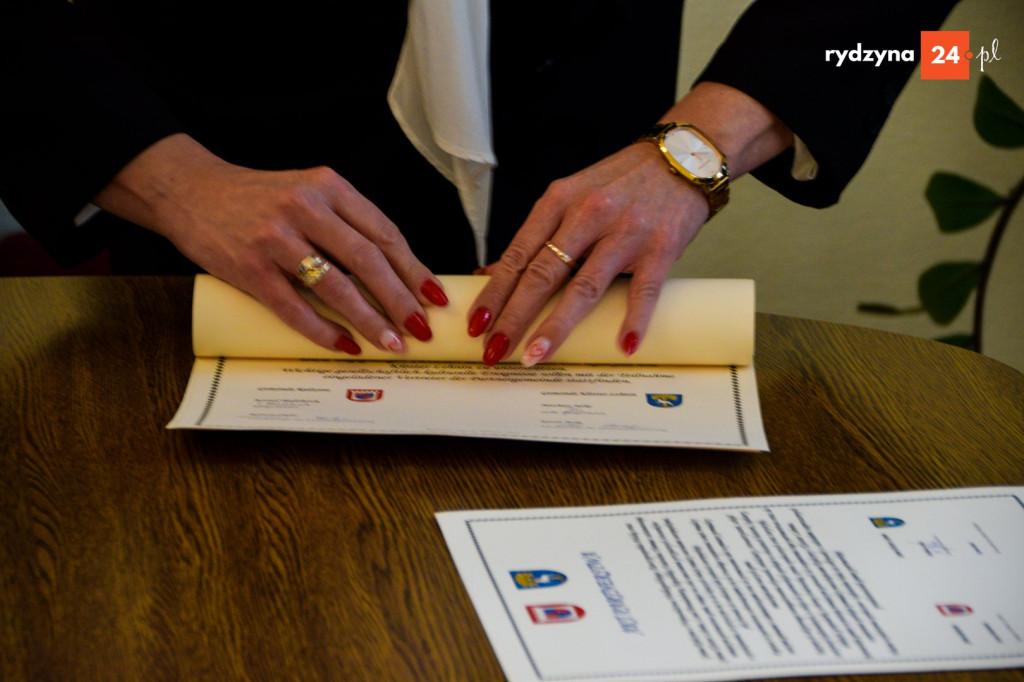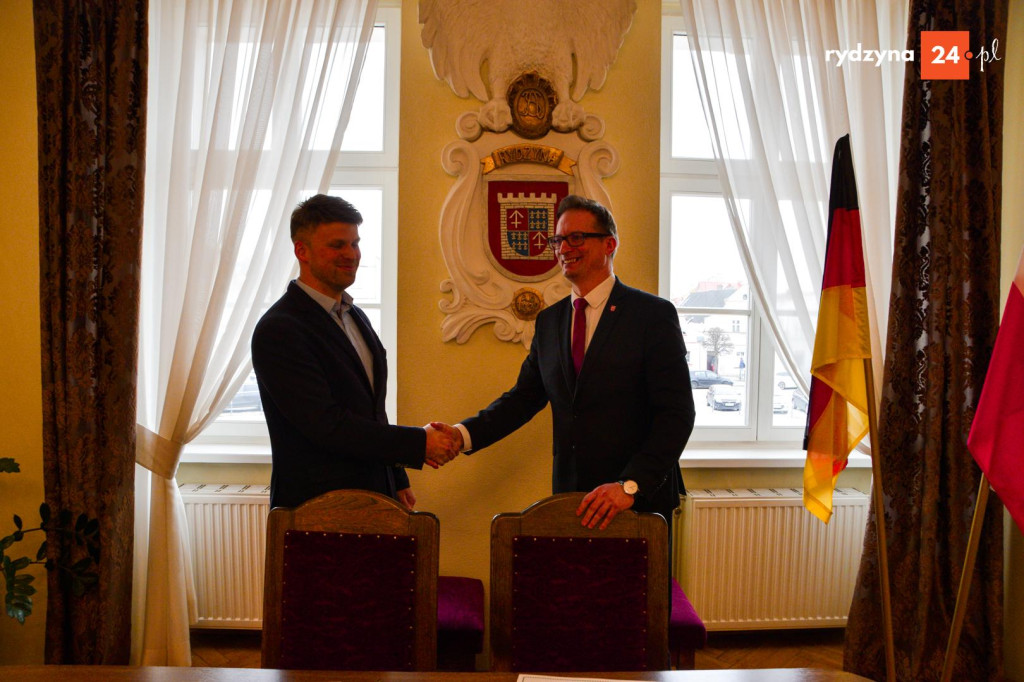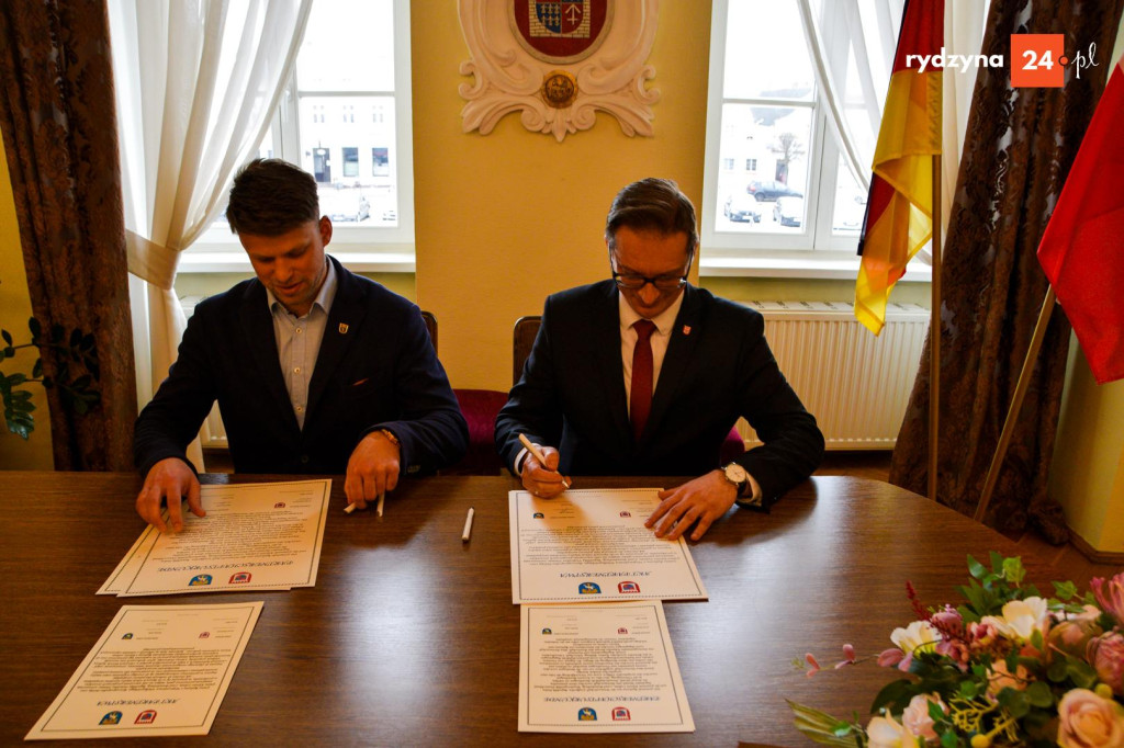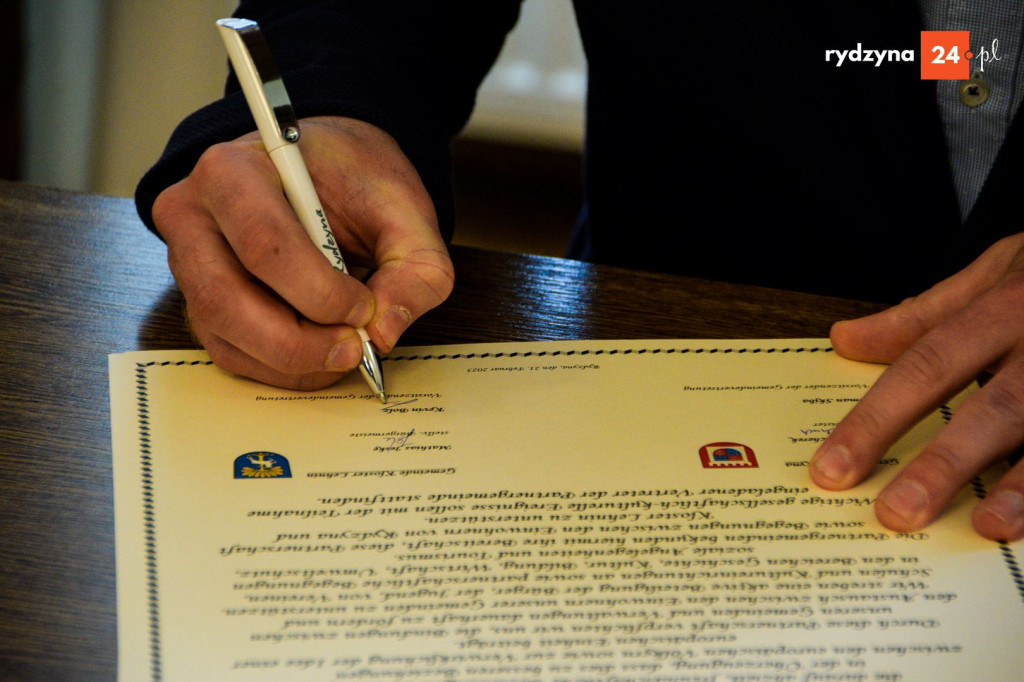 Po zakończeniu wizyt w placówkach oświatowych wszyscy uczestnicy udali się do sali konferencyjnej Urzędu Miejskiego w Rydzynie. To właśnie tam, w obecności przedstawicieli obu gmin, uroczyście podpisano akt partnerstwa. Dokument ten potwierdza gotowość do współpracy w obszarach edukacji, kultury, gospodarki oraz ochrony środowiska. Szczególny nacisk położono na wspieranie spotkań młodzieży, wymianę doświadczeń między stowarzyszeniami oraz współpracę instytucji kultury.