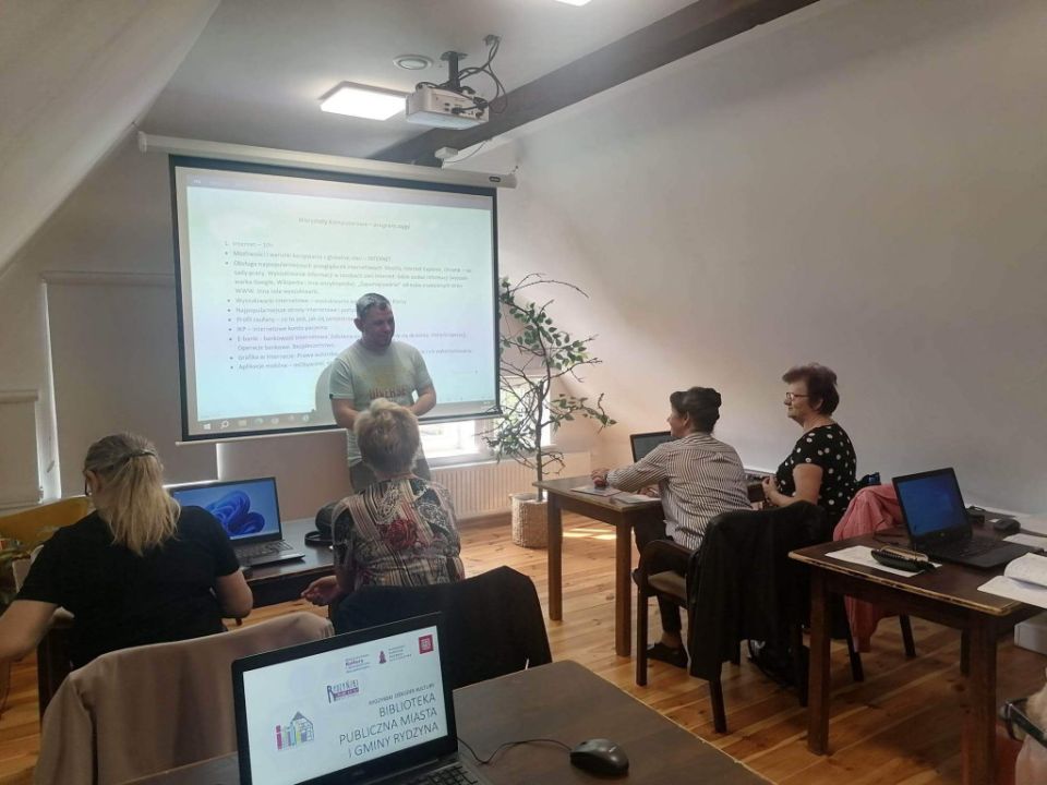 W dniu 23 maja 2023r. w czytelni Biblioteki Publicznej Rydzyńskiego Ośrodka Kultury rozpoczęły się zajęcia kursu komputerowego dla seniorów 60+ zamieszkałych na terenie Gminy Rydzyna w ramach projektu Miejsko- Gminnego Ośrodka Pomocy Społecznej w Rydzynie . Potrzeba zorganizowania tego typu zajęć została zgłoszona przez samych seniorów. W listopadzie 2022 r. przeprowadzone zostało badanie opinii starszych mieszkańców na temat ich potrzeb i oczekiwań. Ankieta została rozpropagowana wśród seniorów we współpracy z stowarzyszeniami działającymi na rzecz osób starszych w Gminie Rydzyna oraz Samorządem Mieszkańców Rydzyny. Rekrutacja do projektu odbyła się również za pośrednictwem stowarzyszeń zrzeszających seniorów.