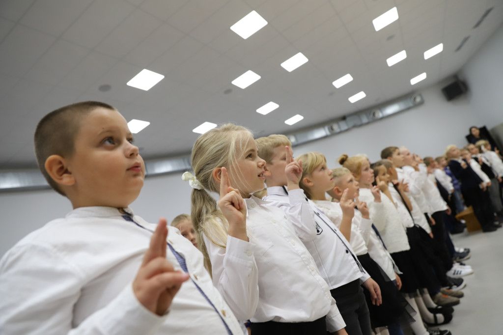 Następnie pierwszoklasiści odśpiewali piosenkę i złożyli ślubowanie.