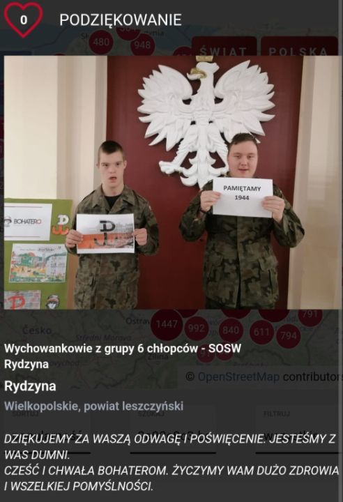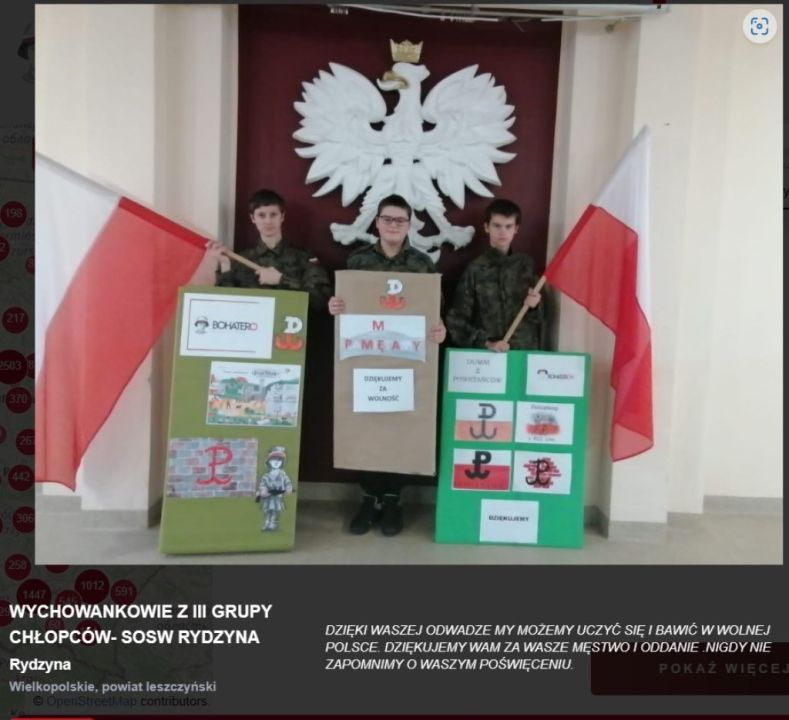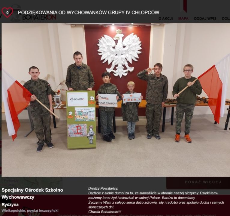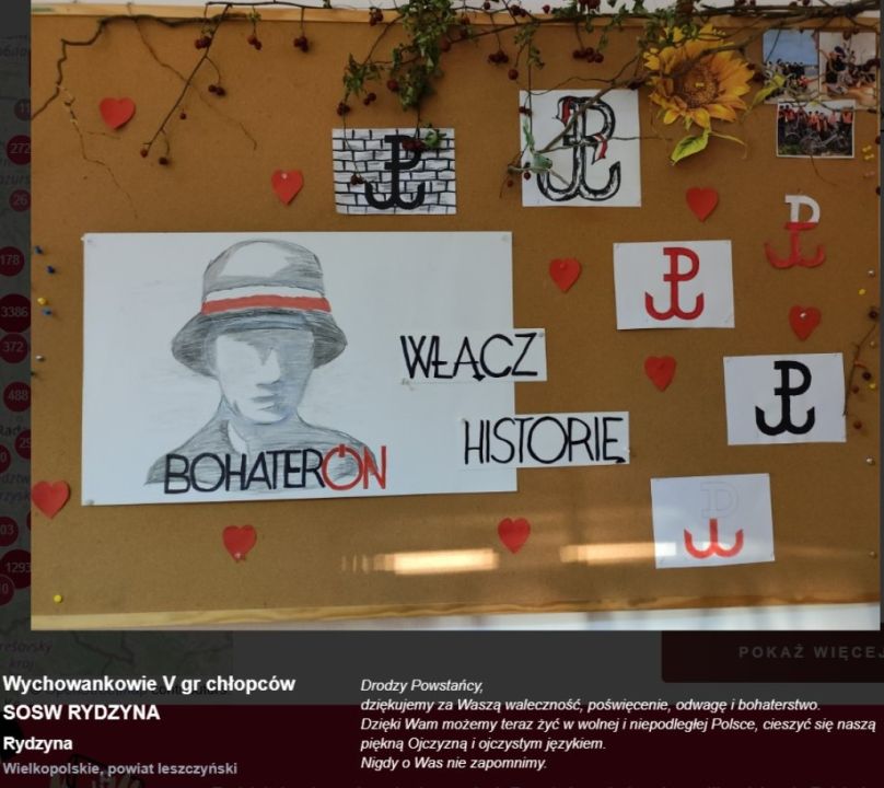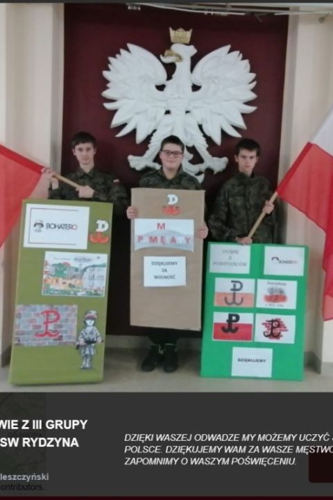Wychowankowie grup wychowawczych Specjalnego Ośrodka Szkolno-Wychowawczego w Rydzynie w tym roku również wzięli udział w akcji. Wspólnie wykonali gazetki tematyczne, oglądali materiały edukacyjne o powstańcach oraz tworzyli wpisy z podziękowaniami. Odbyły się również zajęcia podsumowujące nasze wszystkie działania.