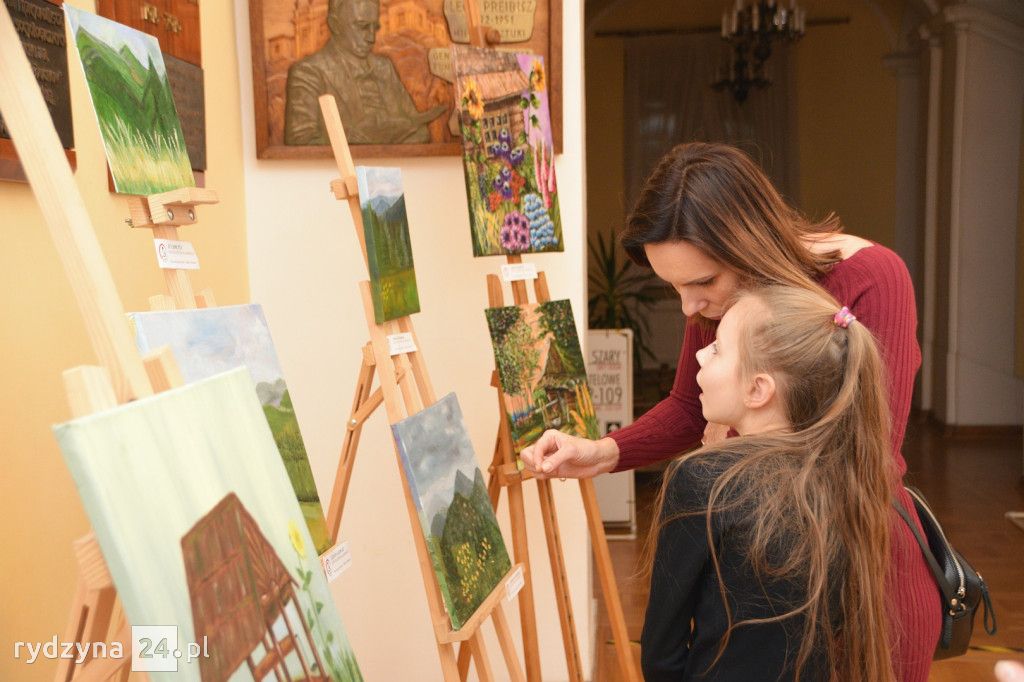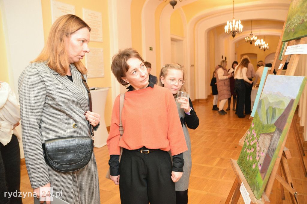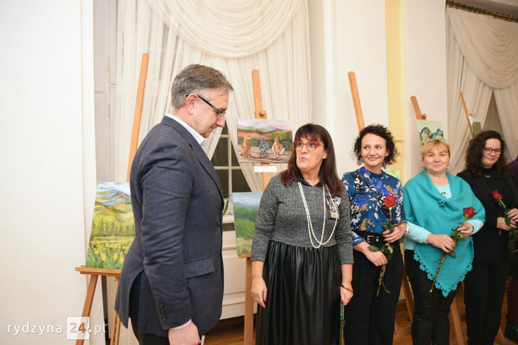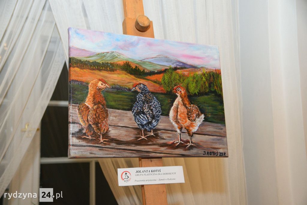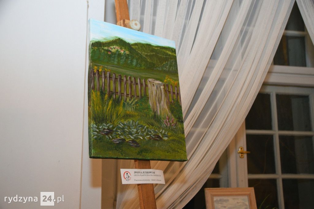 W korytarzu na piętrze Zamku w Rydzynie odbył się wernisaż poplenerowej wystawy malarstwa grupy plastycznej dla dorosłych pracowni artystycznej KOTart. Zaprezentowane obrazy to efekt pracy podczas pleneru na którym były Panie w miesiącu sierpniu. Plener odbył się na wyjeździe w górach.