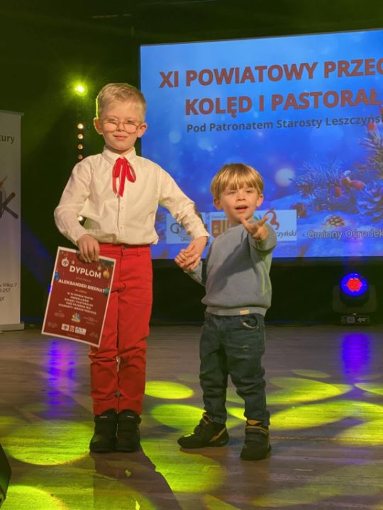 Przedszkole Kolorowy Wiatraczek wytypowało również przedszkolaka, który uczestniczył w XI Przeglądzie Kolęd i Pastorałek w Lipnie, zorganizowanym pod patronatem Starosty leszczyńskiego. I Tu również sukces odniósł uzdolniony przedszkolak Aleksander Biernat. Wszystkim zdolnym przedszkolakom oraz prowadzących ich wychowawcom serdecznie gratulujemy i życzymy następnych sukcesów.