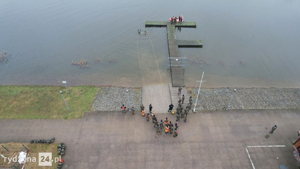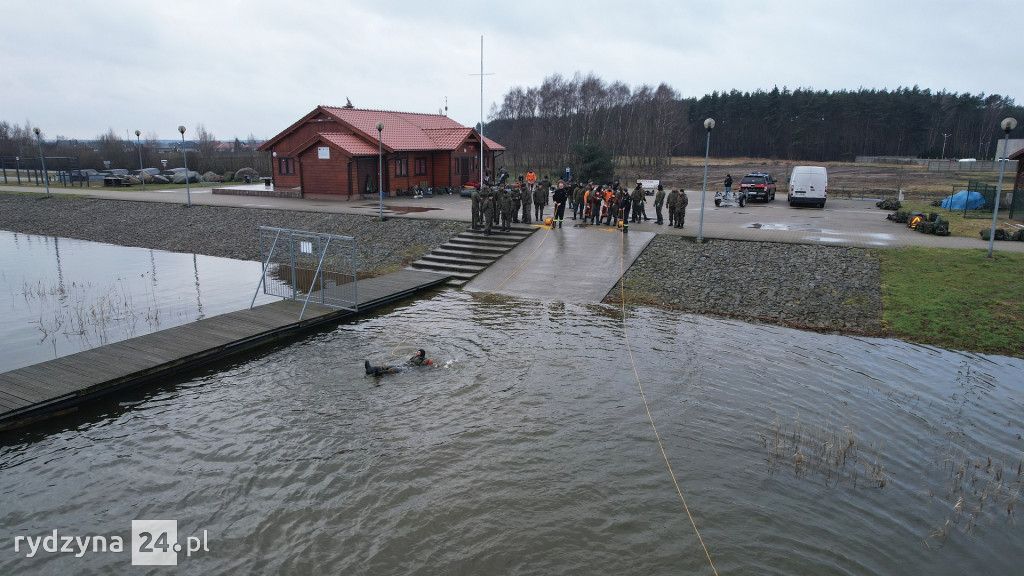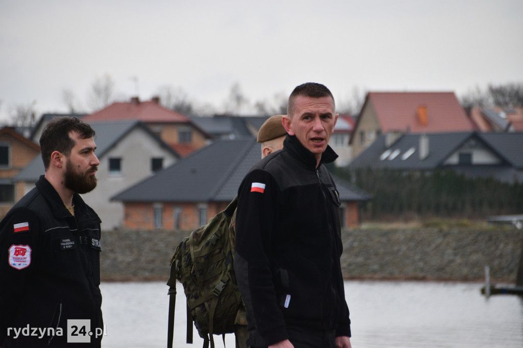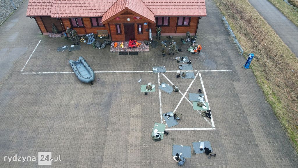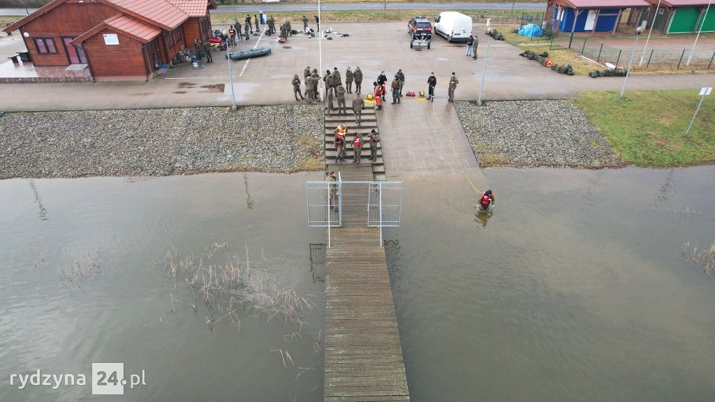 W godzinach wczesno porannych nad zbiornik Rydzyna w Dąbczu zaczęły zjeżdżać ciężarówki wojskowe wypełnione żołnierzami. Tuż po nich pojawiła się Ochotnicza Straż Pożarna z Rydzyny, wspierana przez druhów z Dąbcza. To niecodzienne wydarzenie wzbudziło zaciekawienie zarówno spacerowiczów, jak i wędkarzy korzystających z okolicznych terenów.