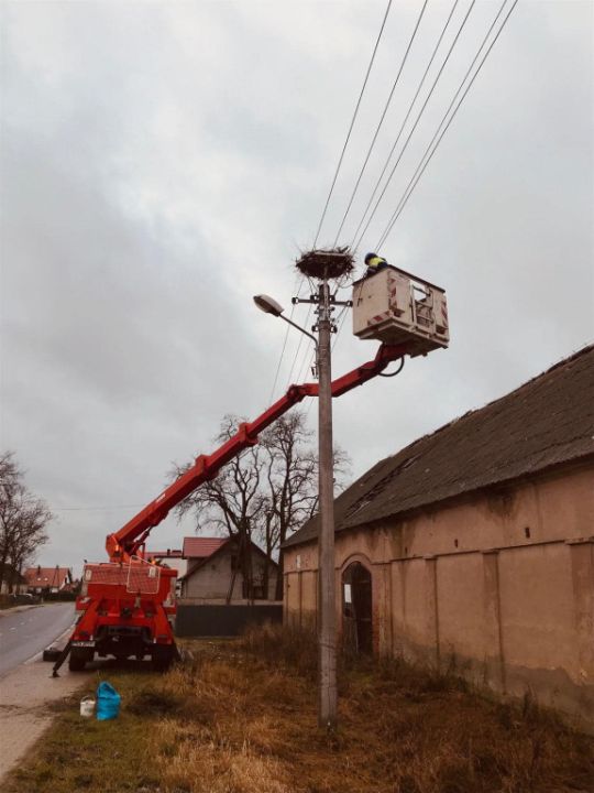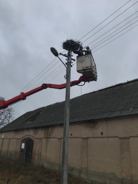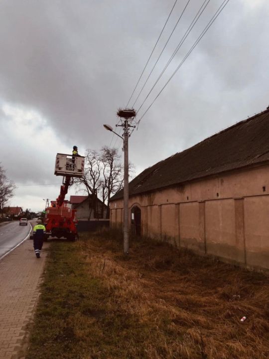 W Kłodzie zamontowano nowe gniazdo bocianie, zastępując zniszczone, które znajdowało się na innym słupie.