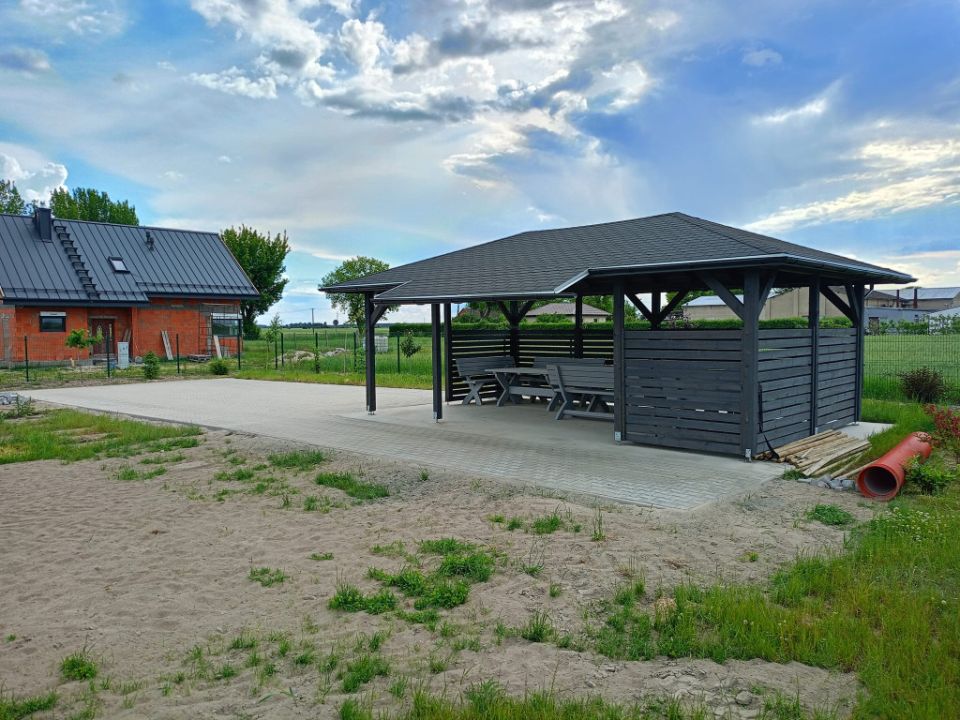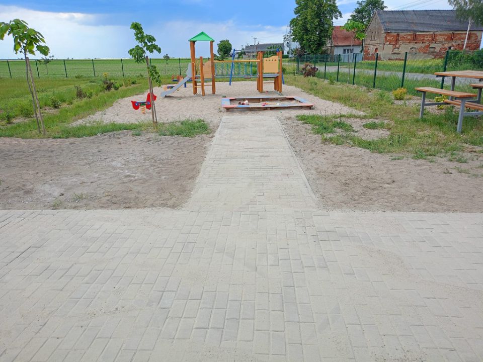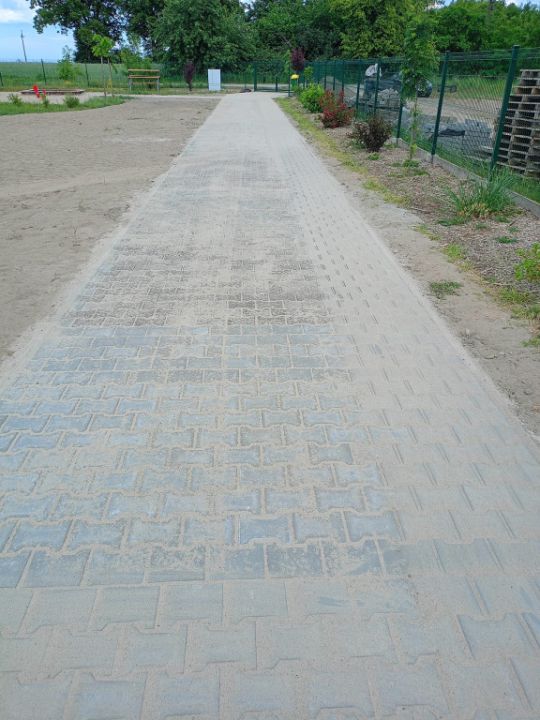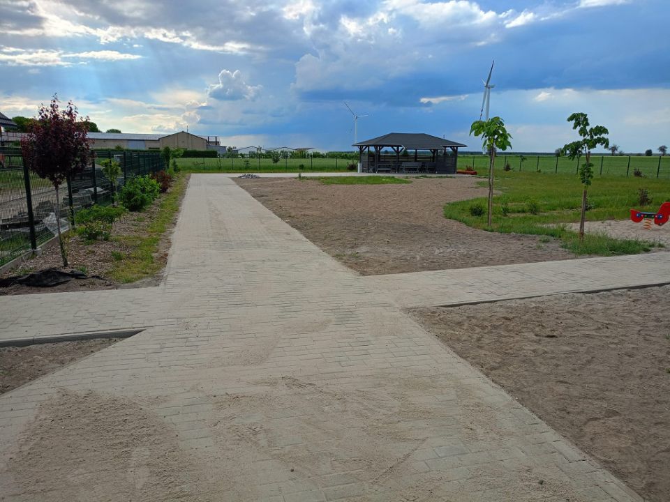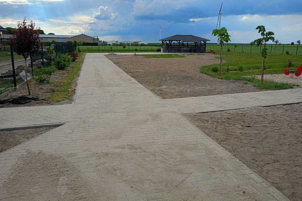 Zaangażowanie mieszkańców nie ograniczało się tylko do układania kostki. Wczesną wiosną pod wiatą na placu pojawiły się nowe, solidne ławki i stoły, wykonane przez StolMar Grzegorz Markiewicz. Dzięki tym udogodnieniom przestrzeń stała się jeszcze bardziej przyjazna i funkcjonalna dla wszystkich użytkowników.