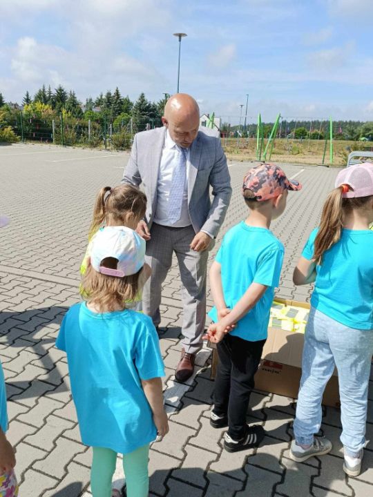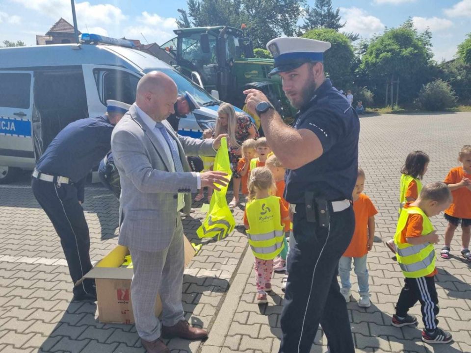 Ponad 372 kamizelki odblaskowe zostały przekazane dzieciom z Przedszkola Kolorowy Wiatraczek dzięki inicjatywie Burmistrza Miasta i Gminy Rydzyna. Oficjalne przekazanie miało miejsce podczas festynu z okazji Dnia Dziecka, w asyście funkcjonariuszy z Wydziału Ruchu Drogowego Komendy Miejskiej Policji w Lesznie.