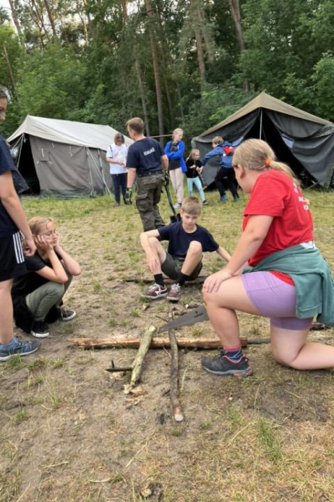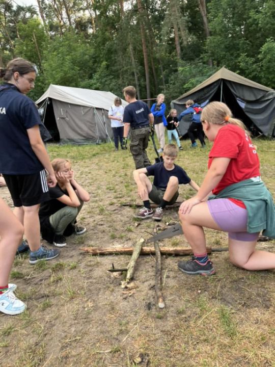 Wczoraj, mimo kapryśnej pogody, harcerze z Dąbcza rozpoczęli letni obóz w malowniczym Rogalinku. Po przybyciu na miejsce, młodzi uczestnicy niezwłocznie zabrali się do rozstawiania namiotów i organizacji życia obozowego. Pomimo pierwszych trudności, zespół szybko zintegrował się, działając zgodnie z harcerskimi wartościami współpracy i solidarności.
