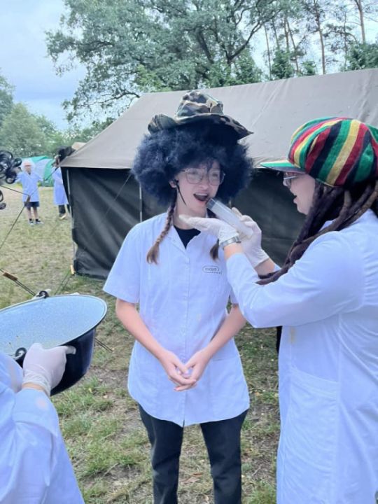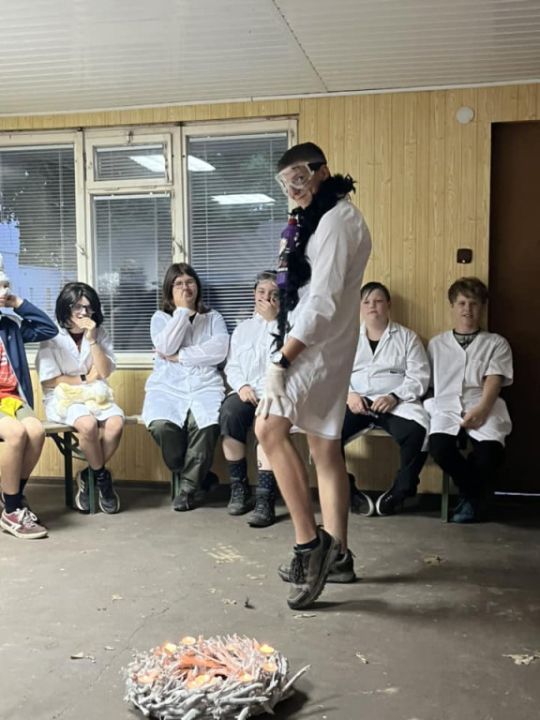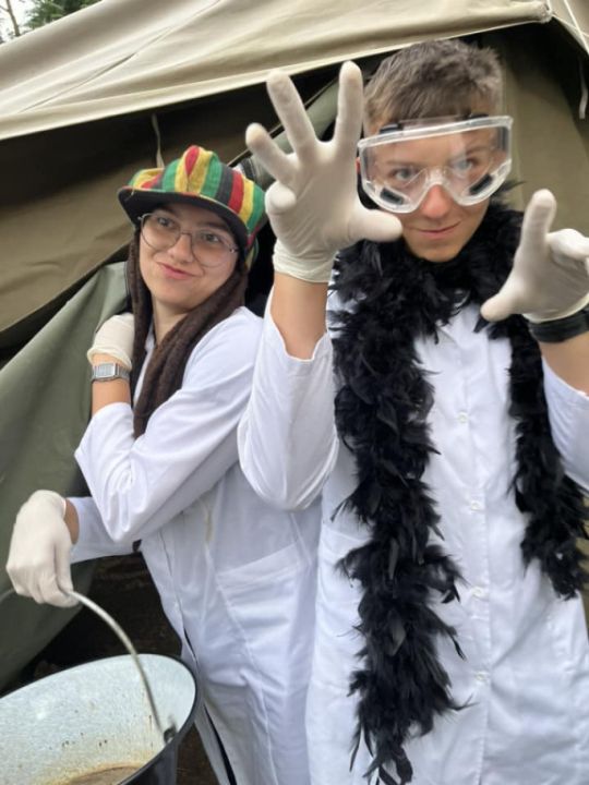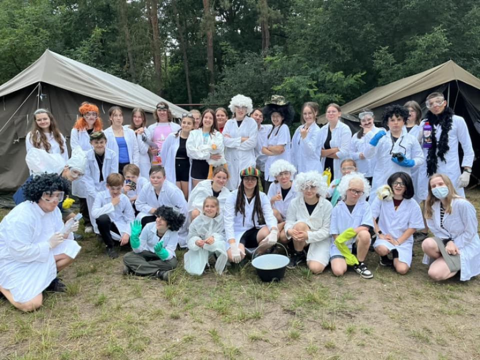 Wieczorem atmosfera obozowa nabrała jeszcze większego blasku. Harcerze przebrali się za szalonych naukowców, aby wziąć udział w świecowisku.