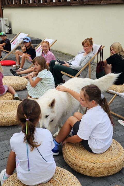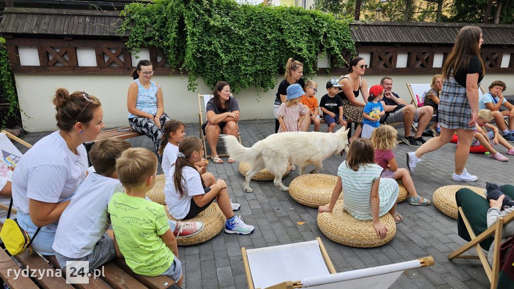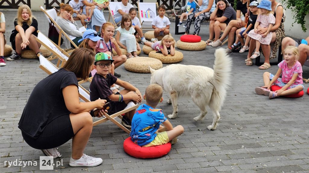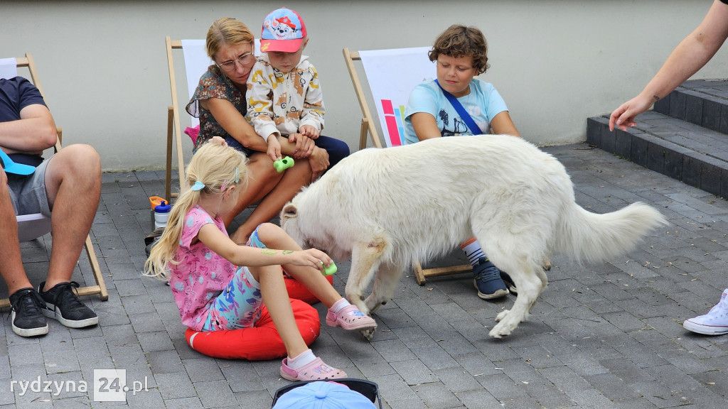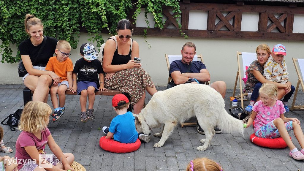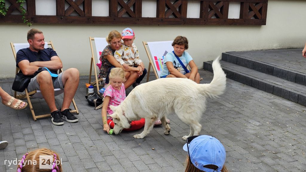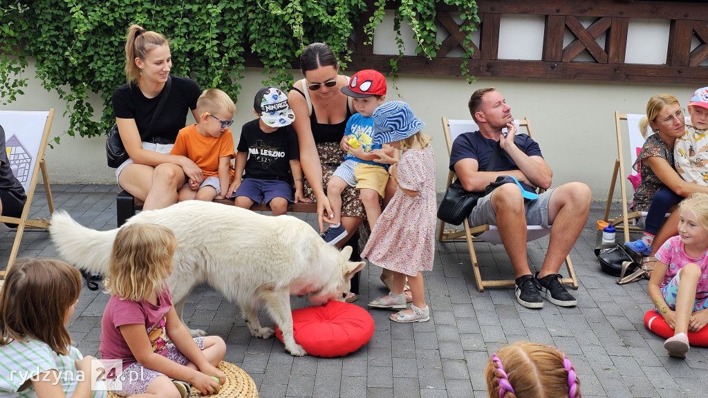 26 sierpnia 2024 roku w Bibliotece Kultury w Rydzynie odbyło się wyjątkowe wydarzenie poświęcone dogoterapii, które przyciągnęło wielu miłośników zwierząt oraz rodziny z dziećmi. Główną atrakcją spotkania była Alaska – pies terapeutyczny, z którym uczestnicy mieli okazję spędzić czas na zabawie i nauce.