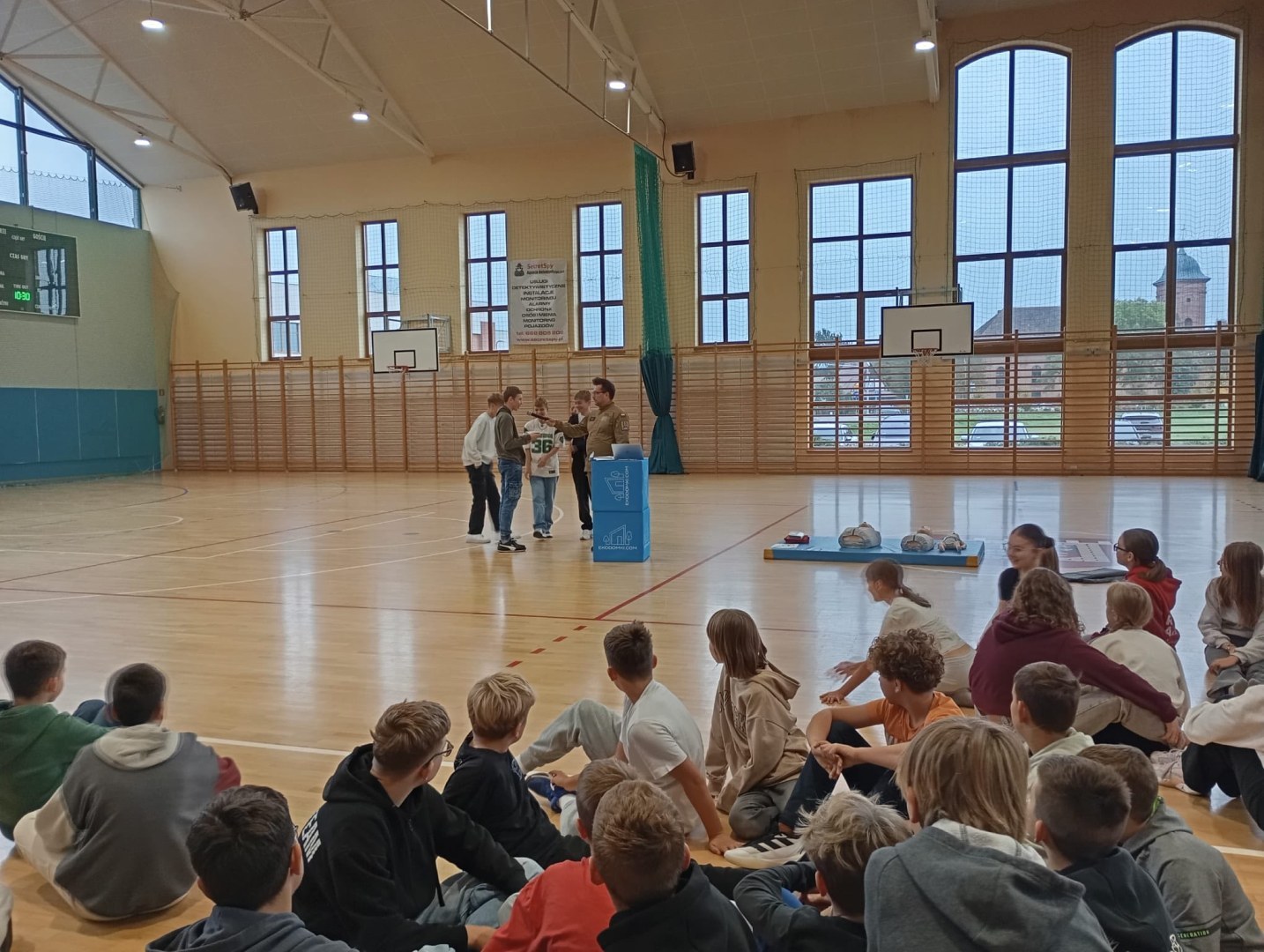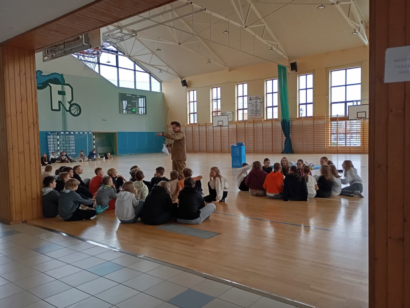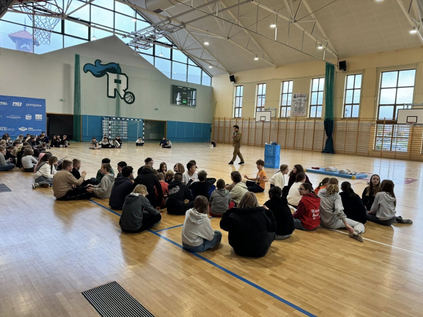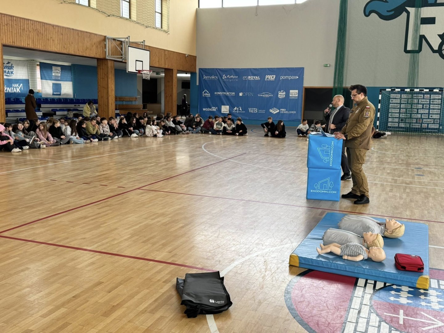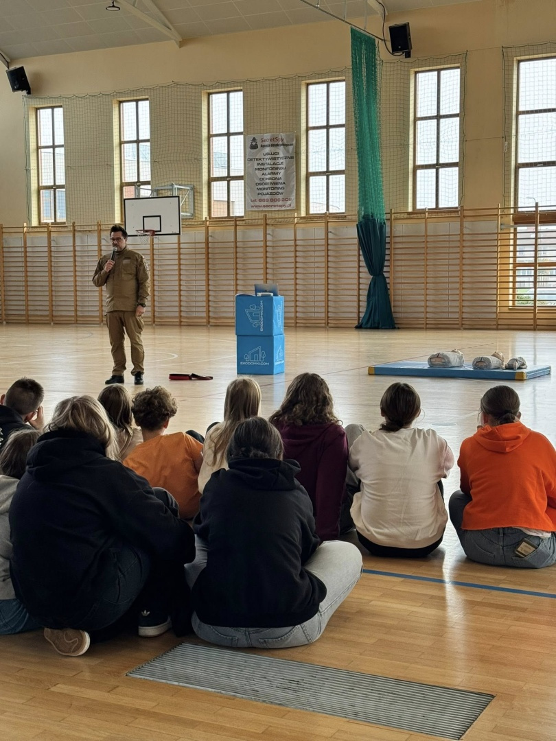 W hali sportowej Szkoły Podstawowej w Rydzynie odbyło się wyjątkowe wydarzenie edukacyjne, w którym uczestniczyli uczniowie klas VI i VII. Zajęcia poprowadził ochotnik straży pożarnej – Bartek Matyla, który w przystępny i praktyczny sposób przybliżył młodzieży zasady udzielania pierwszej pomocy.