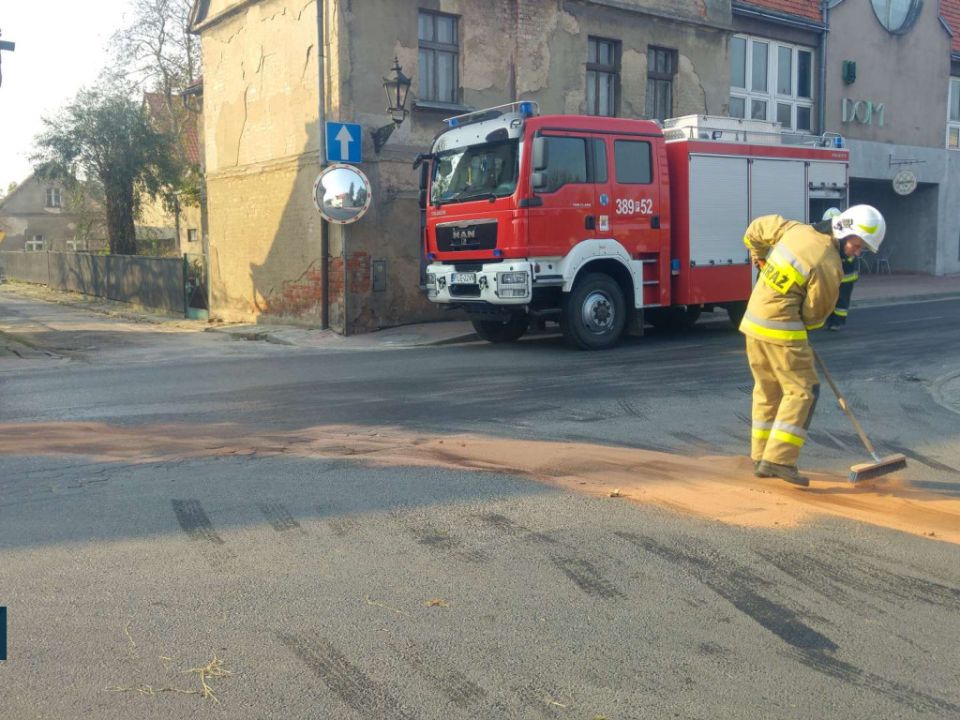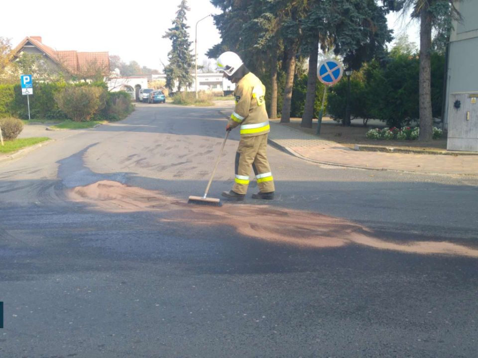 Można powiedzieć, że rutyną stało się usuwanie przez strażaków z Rydzyny plam oleju na naszych drogach. W dniu dzisiejszym na ulicy Rzeczypospolitej  OSP Rydzyna neutralizowała kolejną substancję ropopochodną.