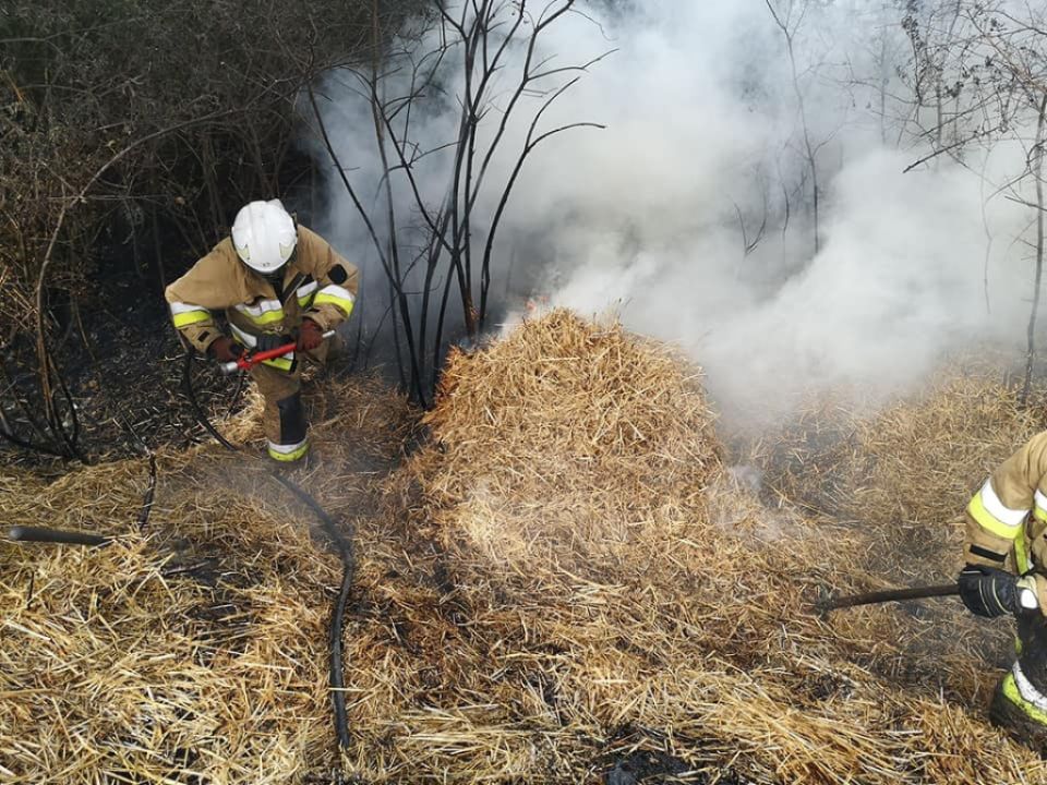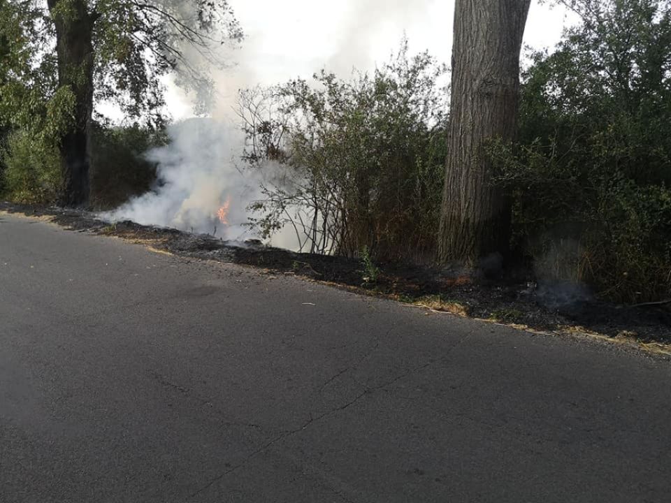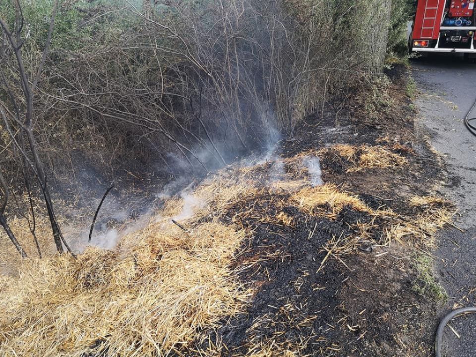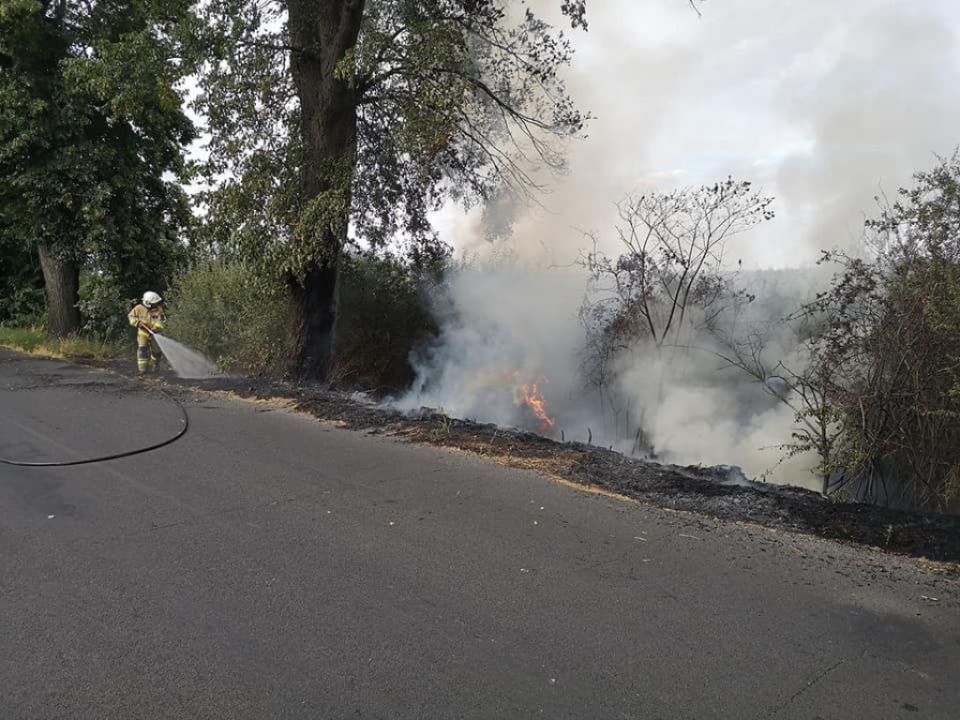 Pożar rowu i balotów