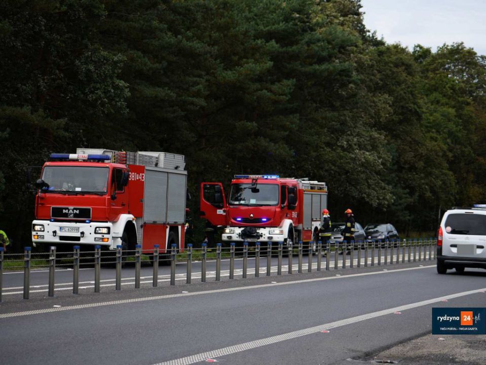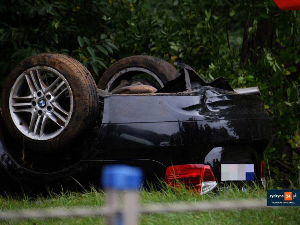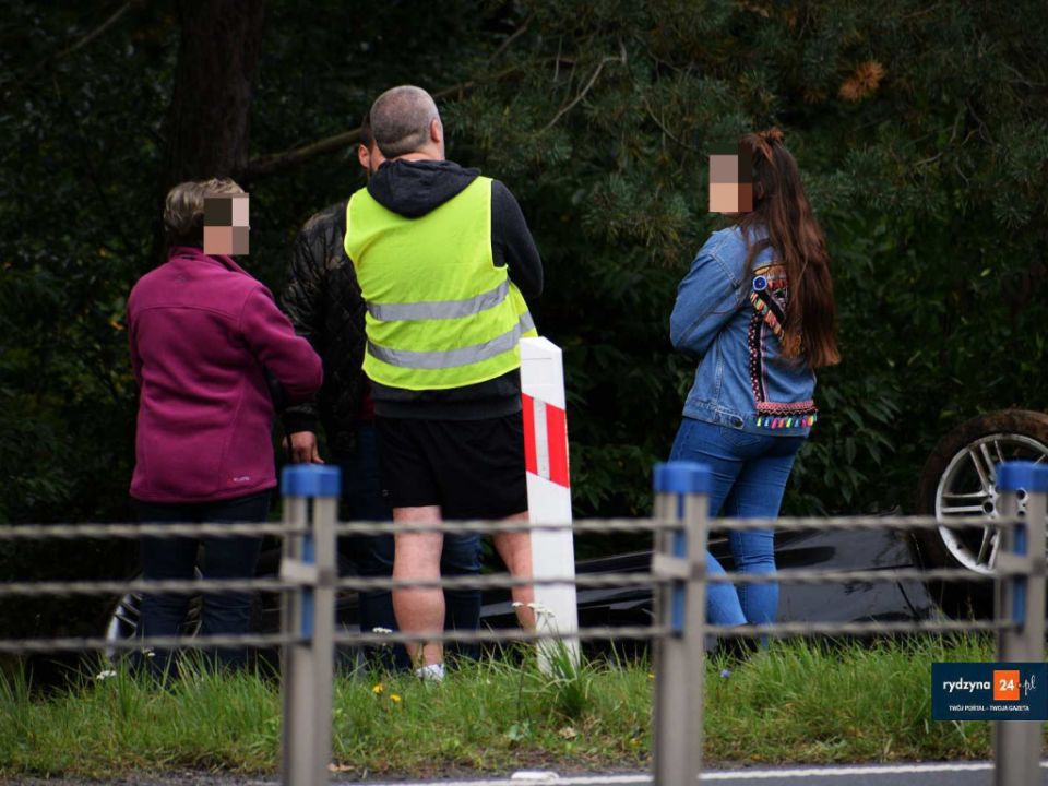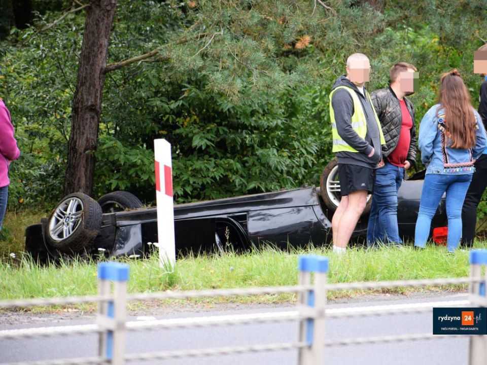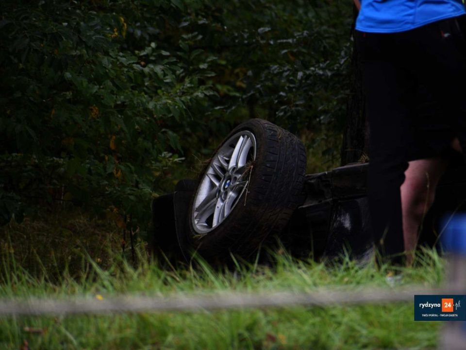 W jednym czasie dwa zdarzenia na drodze z Leszna do Rydzyny. Około godziny 15.00 przed zjazdem na Rydzynę BMW wjechało do rowu i dachowało.