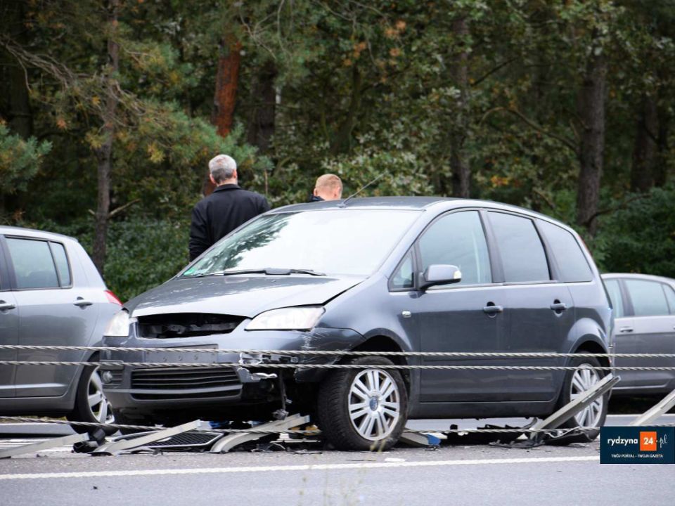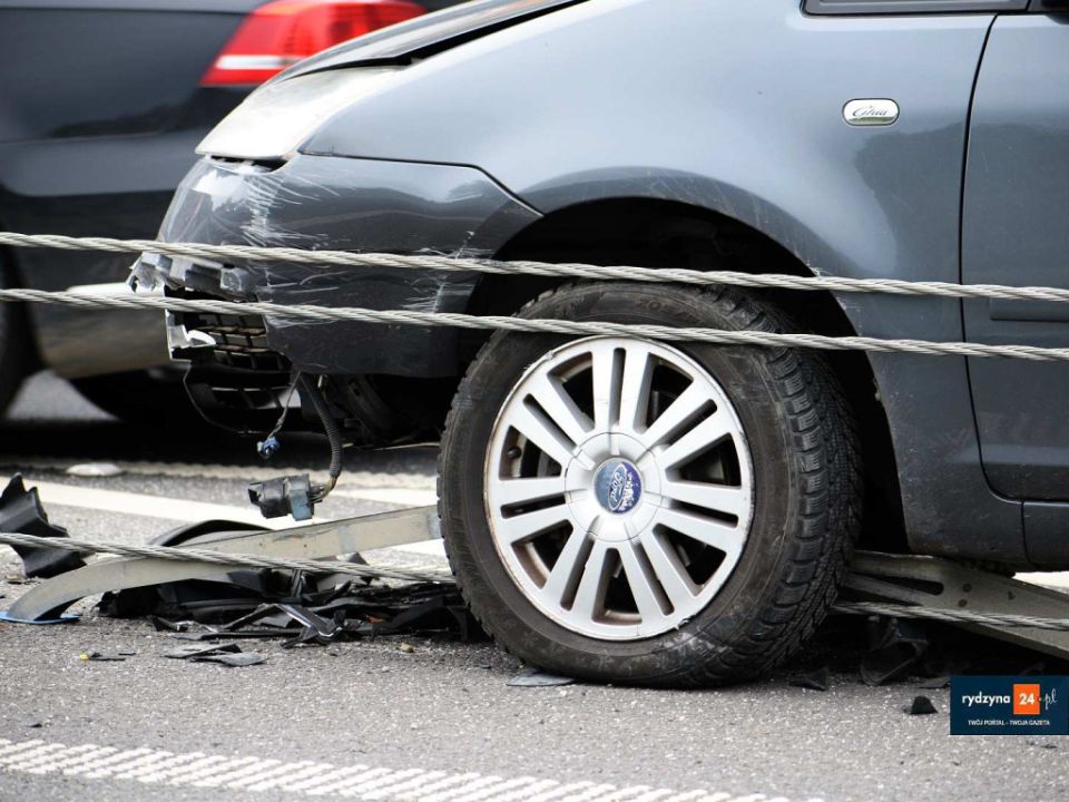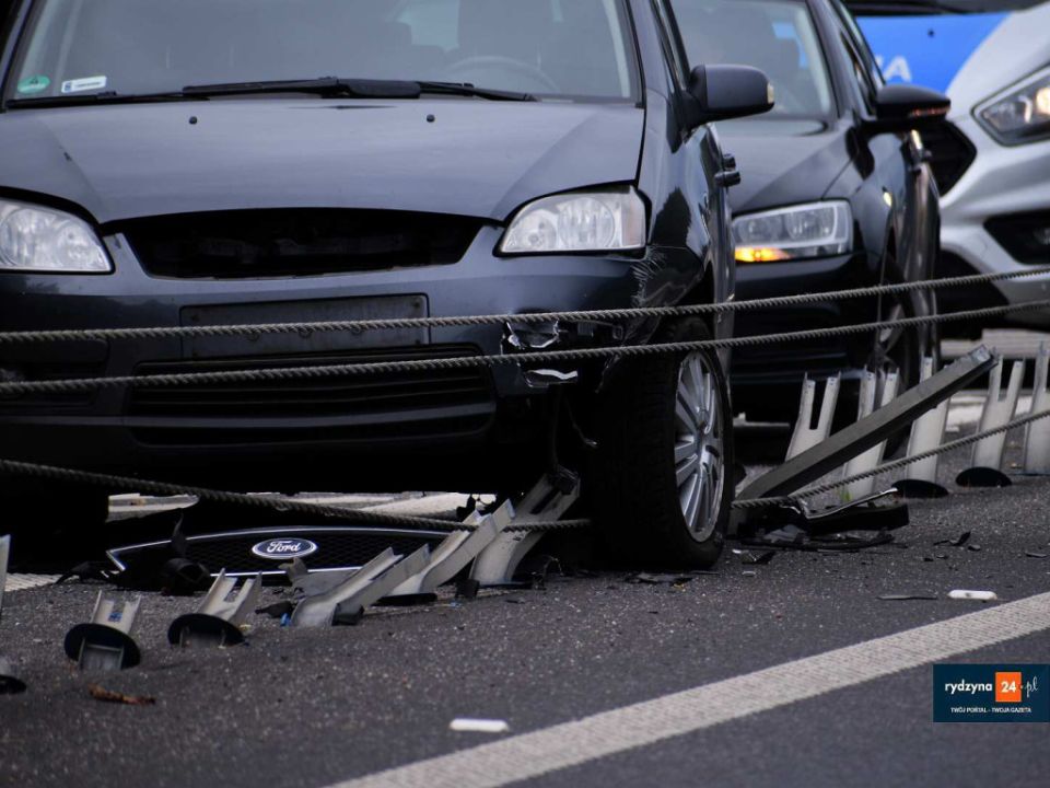 W bariery chłonne uderzył też kolejny samochód marki Ford, którym podróżowała rodzina z dziećmi.