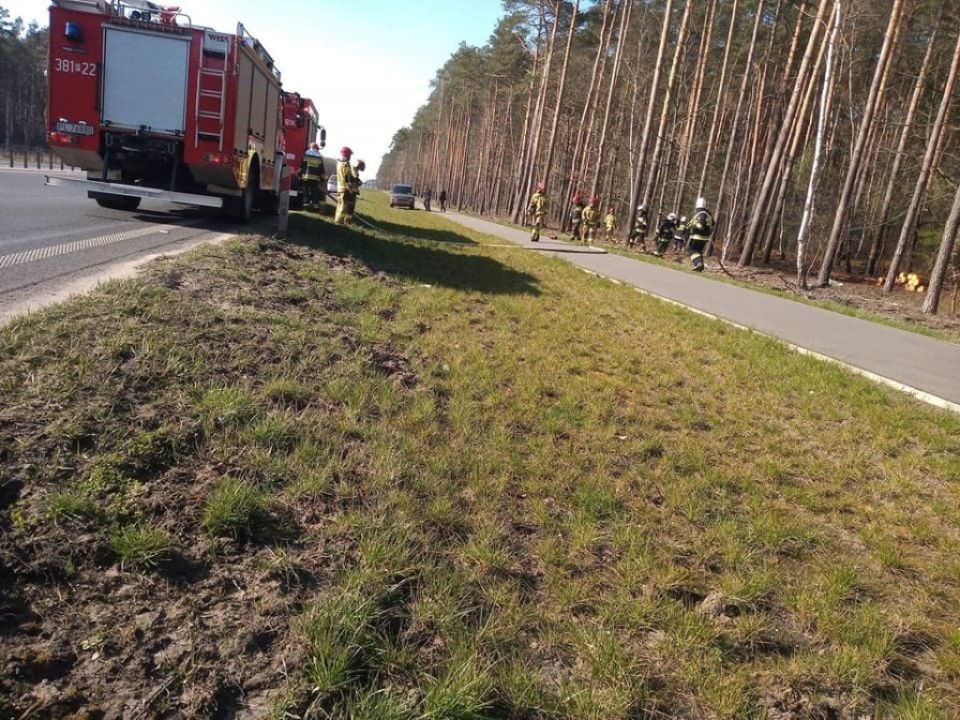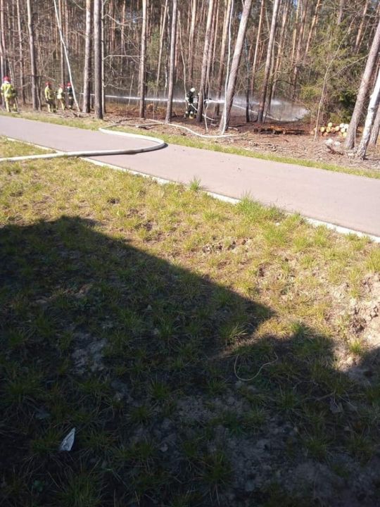 Ogień zajął leśną  ściółkę. Na miejscu pracował  zastęp z Dąbcza, dwa zastępy z JRG Leszno, policja oraz organ nadleśnictwa.
