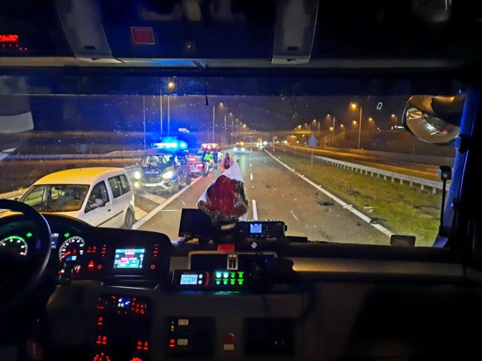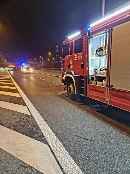 W czasie powrotu z pożaru ciężarówki, strażacy dostali zgłoszenie o wypadku na drodze S5. Po przybyciu na miejsce zastali dwa auta na pasie zieleni. Kierujący nimi wyszli z nich o własnych siłach. Działania polegały na zabezpieczeniu miejsca zdarzenia, oświetleniu terenu akcji oraz uprzątnięciu resztek powypadkowych. W czasie akcji jeden z kierowców zaczął uskarżać się na stan zdrowia. Wezwane zostało pogotowie ratunkowe, które zabrało poszkodowanego na badania do szpitala. Działania zakończone po około 3 godzinach.