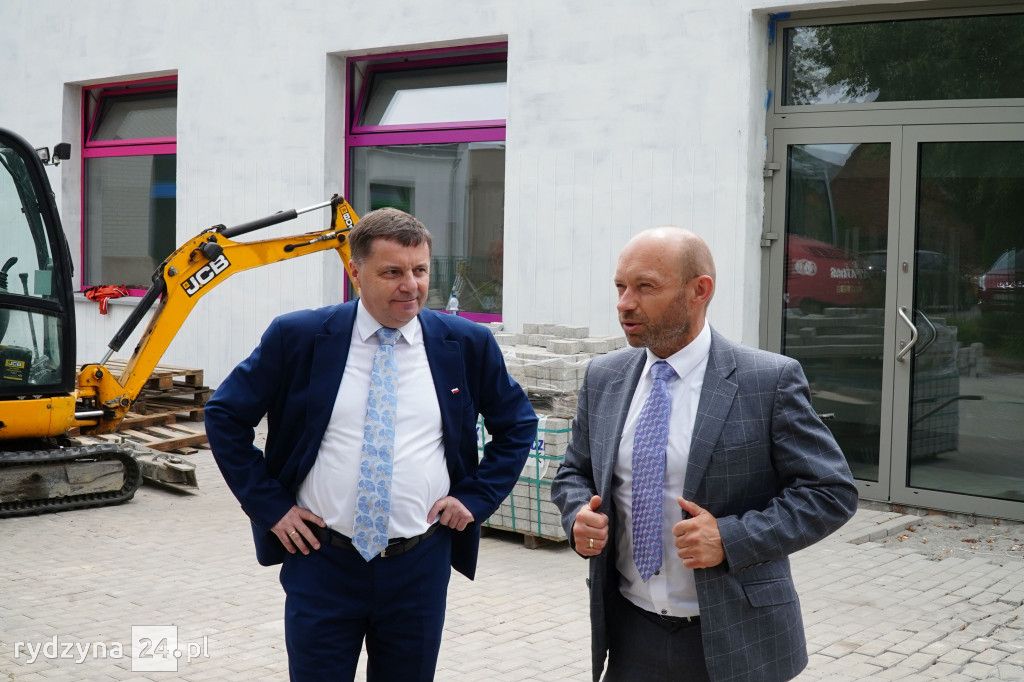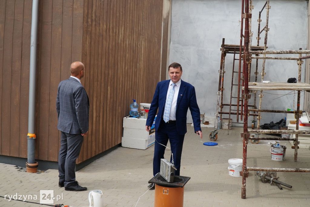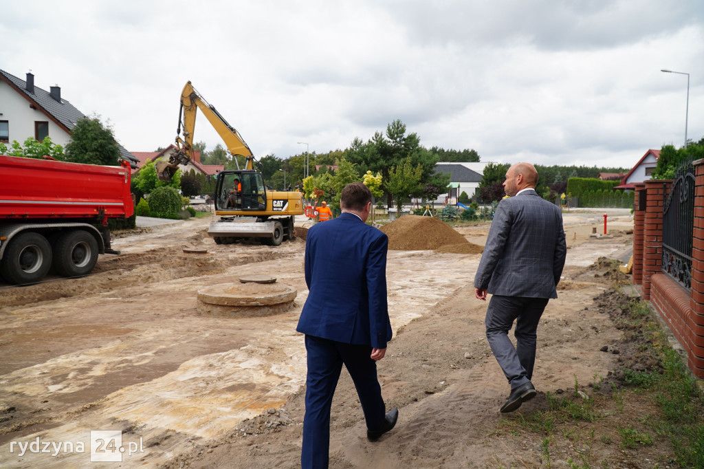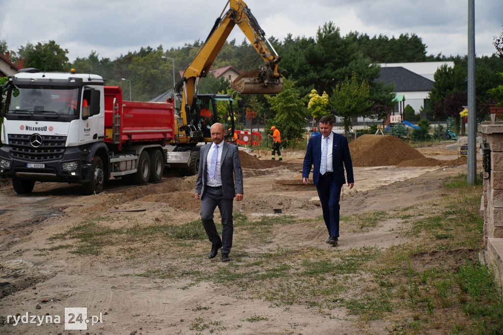 Z wizytą gospodarczą inwestycji trwających w gminie Rydzyna przyjechał poseł na Sejm Rzeczypospolitej Polskiej Tomasz Ławniczak. Wraz z burmistrzem Miasta i Gminy Rydzyna Kornelem Malcherkiem zapoznali się z postępem prac na dwóch największych inwestycjach w gminie.