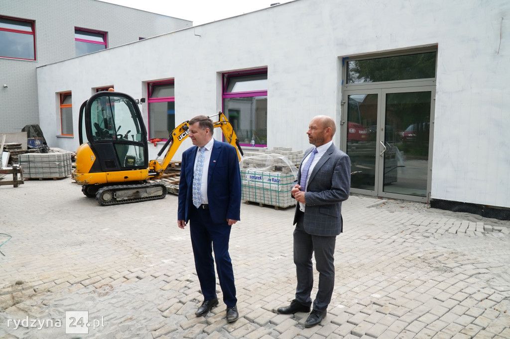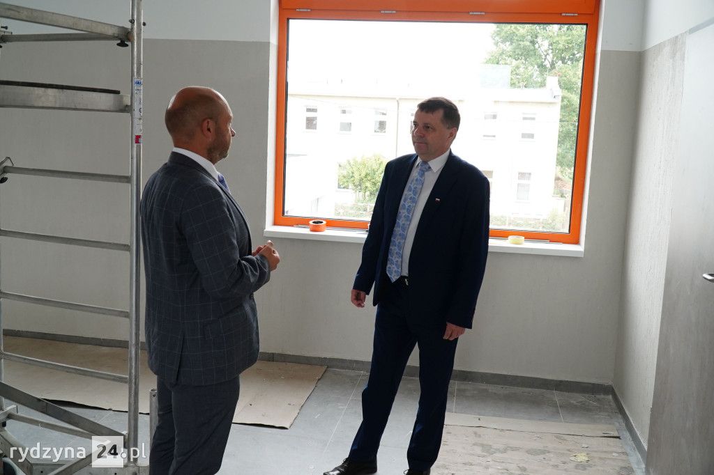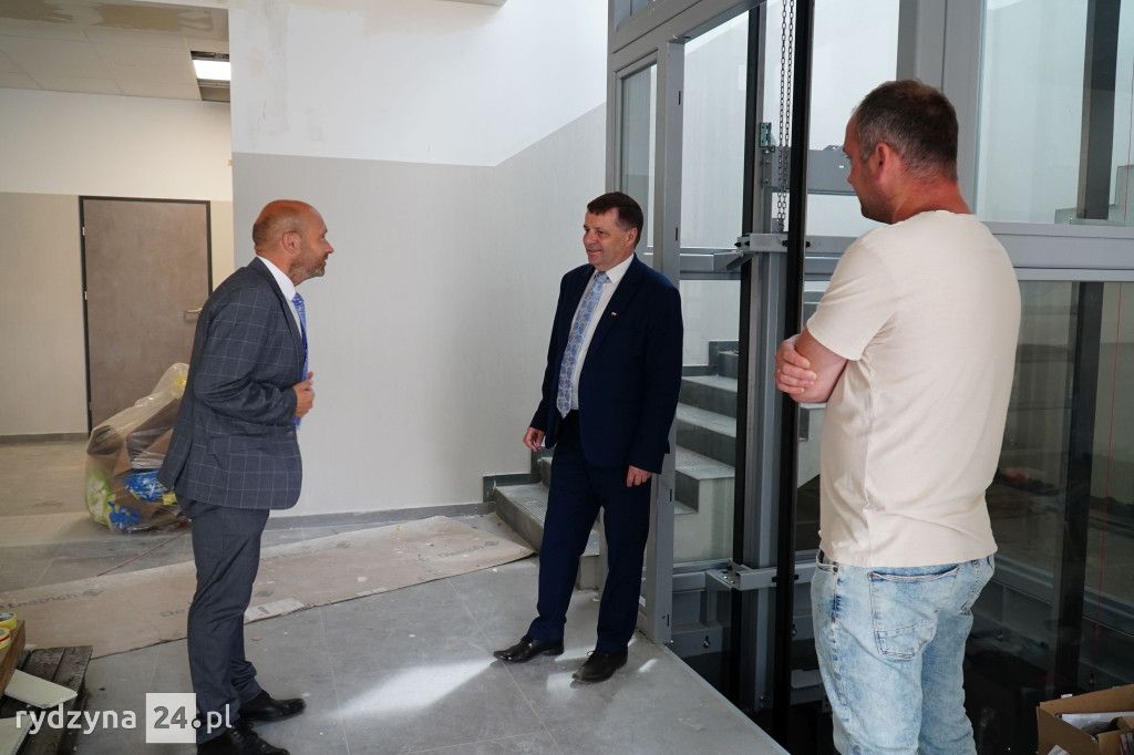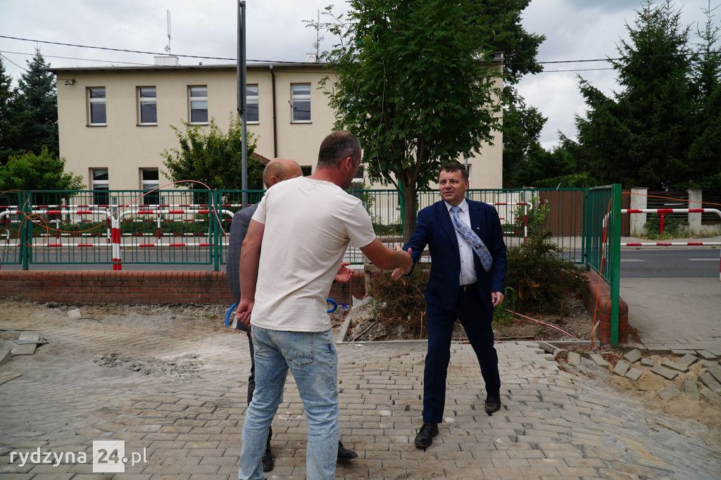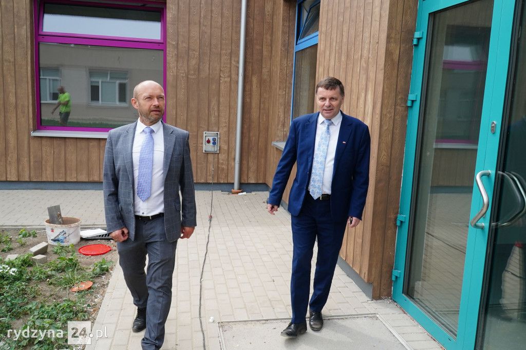 Z wizytą gospodarczą inwestycji trwających w gminie Rydzyna przyjechał poseł na Sejm Rzeczypospolitej Polskiej Tomasz Ławniczak. Wraz z burmistrzem Miasta i Gminy Rydzyna Kornelem Malcherkiem zapoznali się z postępem prac na dwóch największych inwestycjach w gminie.