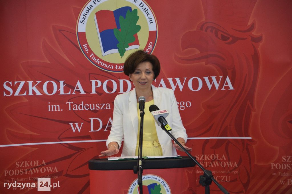 W godzinach popołudniowych będzie dzień otwarty Szkoły Podstawowej im. Tadeusza Łopuszańskiego w Dąbczu. Podczas wydarzenia pojawiło się sporo ważnych osobistości, między innymi minister rodziny Marlena Maląg, czy sekretarz Stanu Jan Dziedziczak.