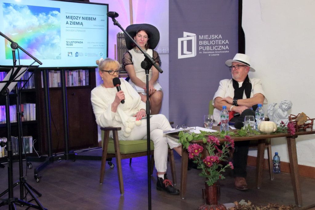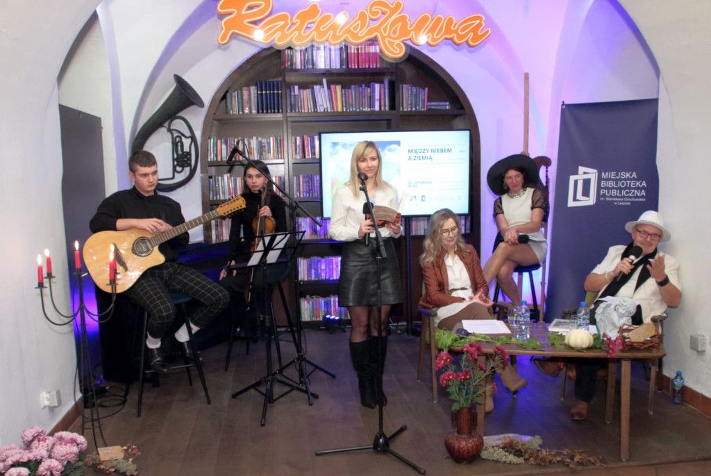 "Między niebem a ziemią" to wydarzenie, które odbyło się 12 listopada w Bibliotece Ratuszowa w Lesznie, w ramach zaduszkowego okresu. Była to II odsłona wspomnień postaci związanych ze sztuką a w szczególności ze słowem – poezją, prozą, jak również muzyką. Artystów związanych z Lesznem i szeroko pojętym regionem.