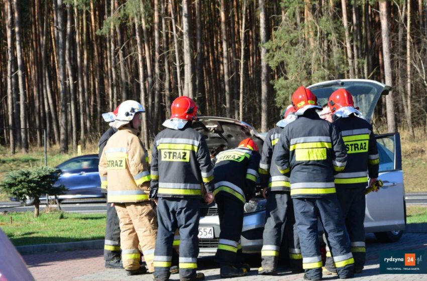 Obok stacji paliw Orlen w Dąbczu miało miejsce zagrożenie pożarowe. Na parkingu w samochodzie osobowym wydobywał się dym Więcej
